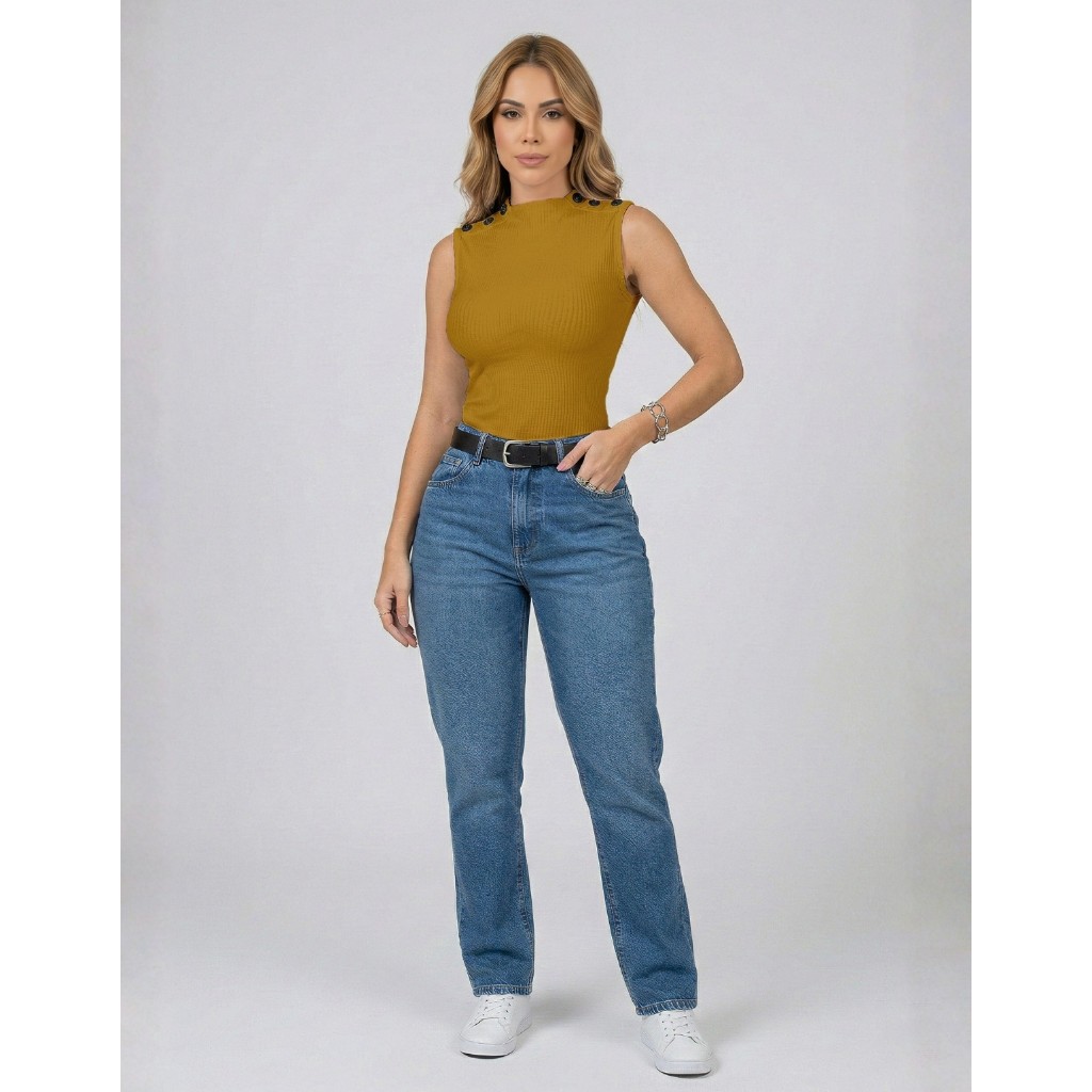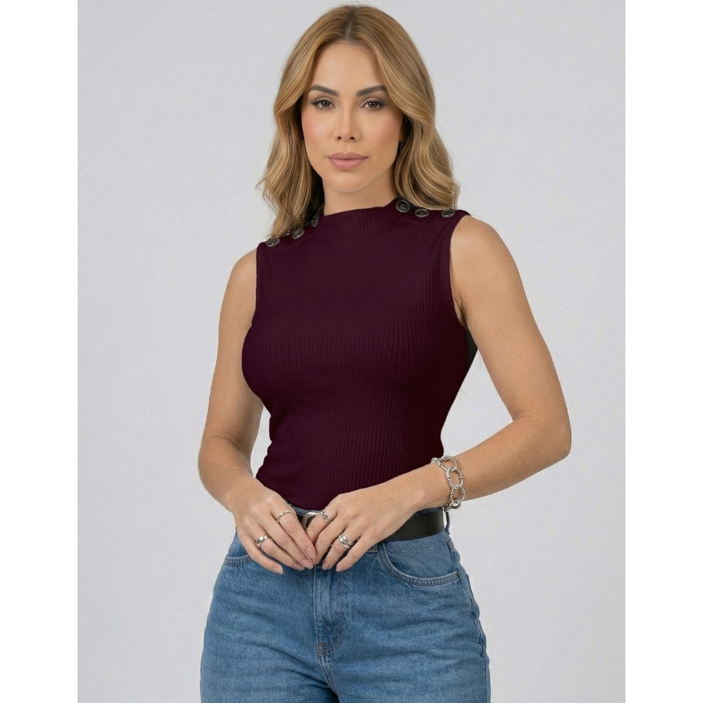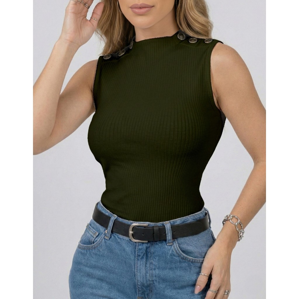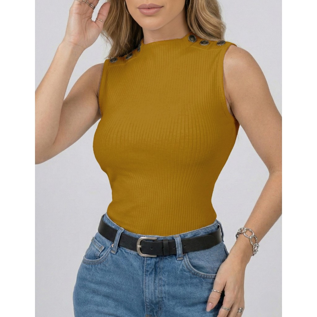 Blusa Blusinha Feminina Regata Gola Golinha Canelada Botão Tendencia Para Mães 2025