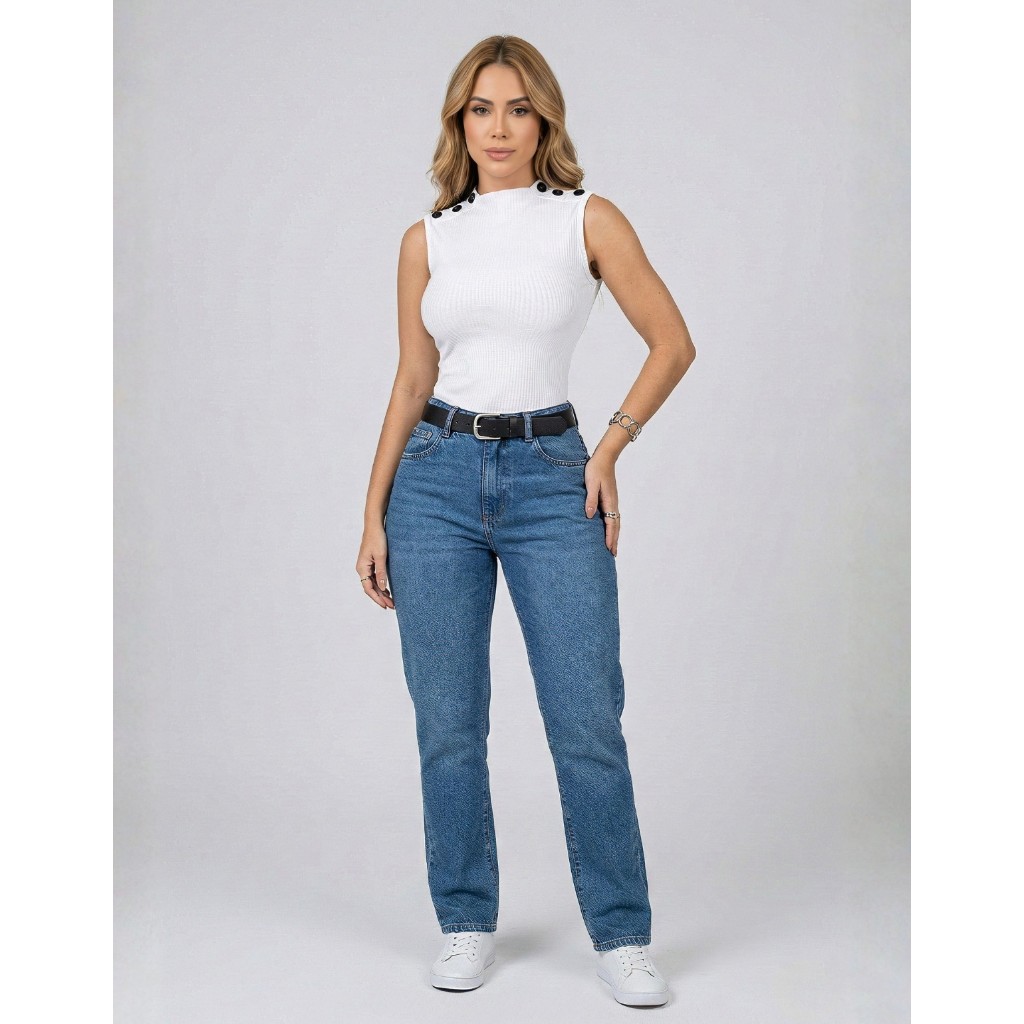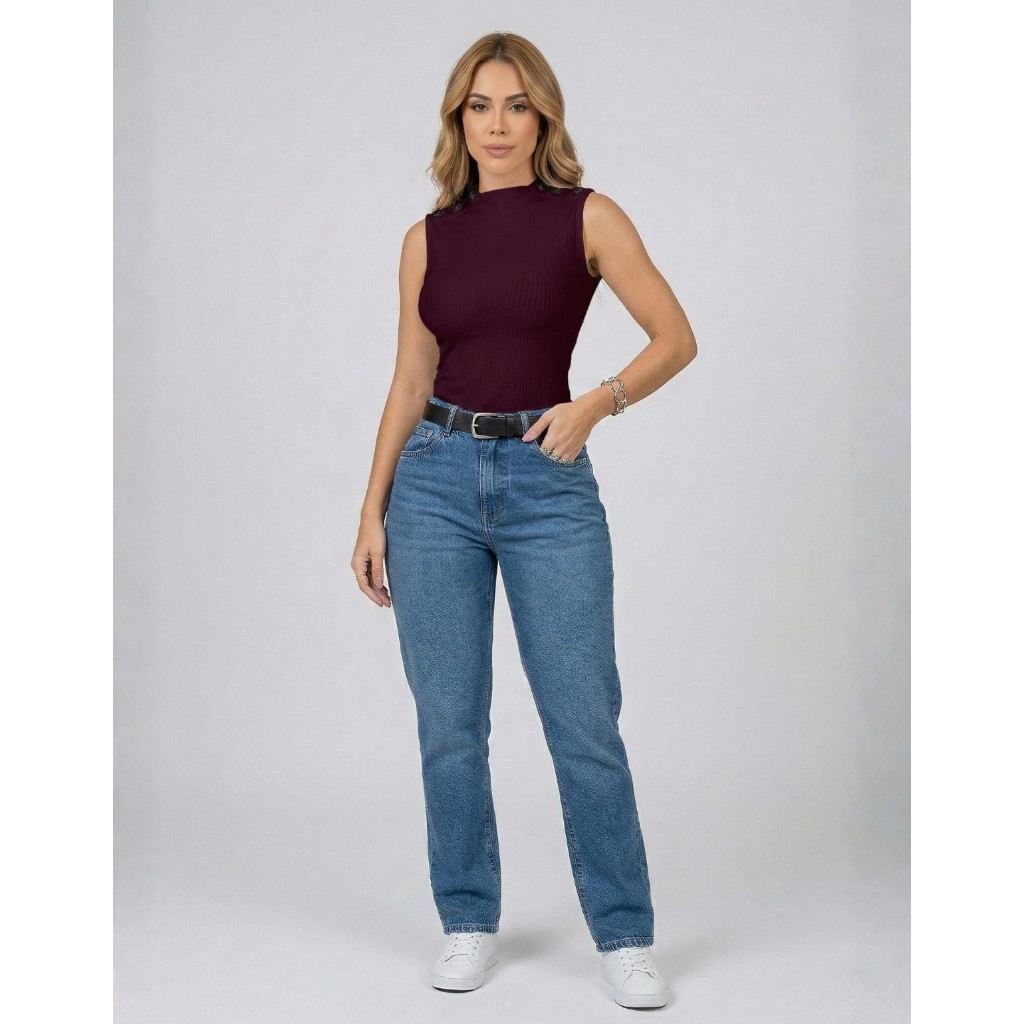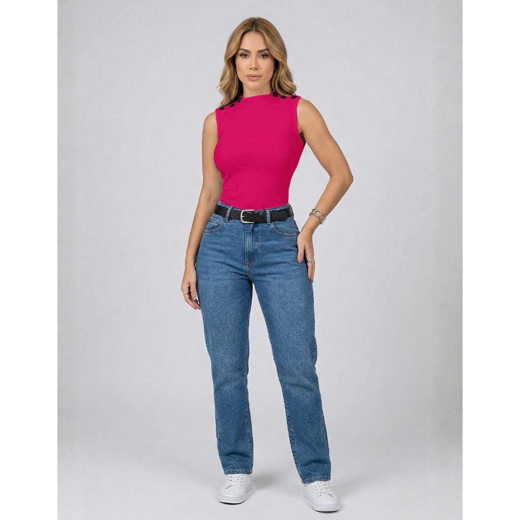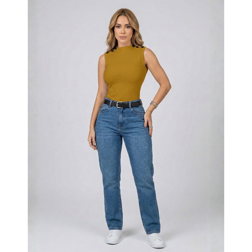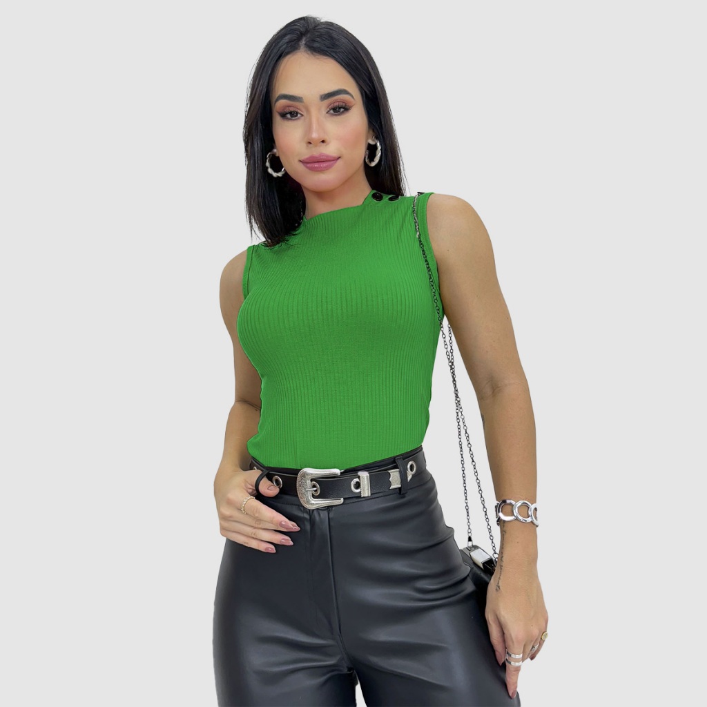 Blusa Blusinha Feminina Regata Gola Golinha Canelada Botão Tendencia Para Mães 2025