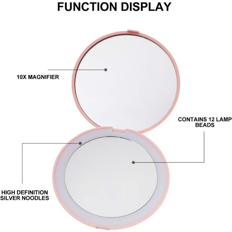 Espelho de Bolsa com LED com Aumento Portátil Compacto Dobrável