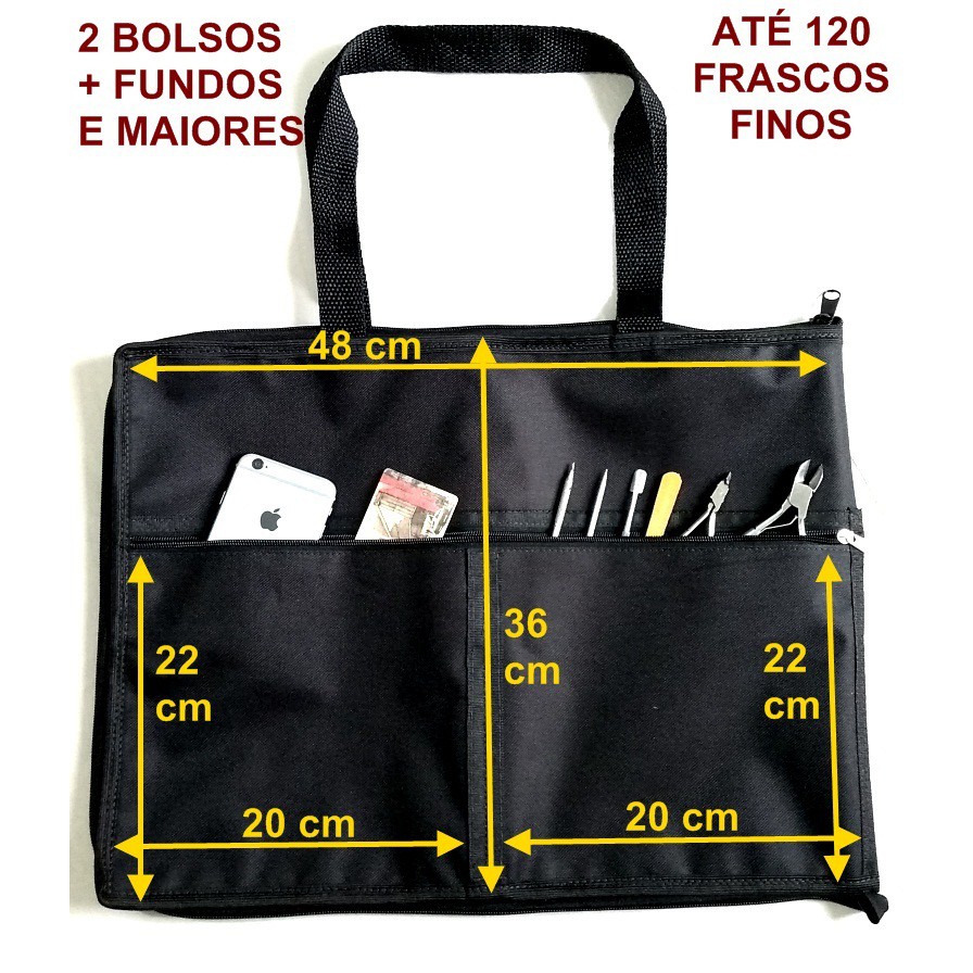 Bolsa Pasta Porta Esmaltes / Maquiagem Manicure Domicilio p/ até 120 frascos C/ Bolsos Externos e Zipers int.Individuais