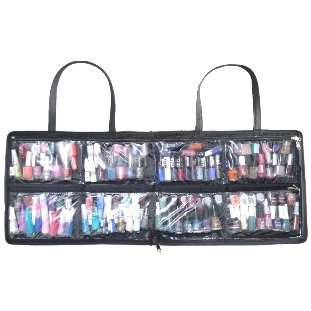 Bolsa Pasta Porta Esmaltes / Maquiagem Manicure Maquiador Domicilio em Couro Ecológico Premium preta p/ até 120 frascos