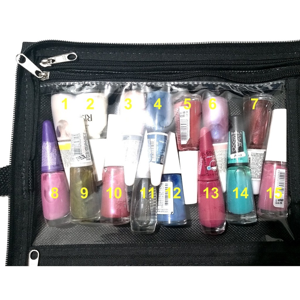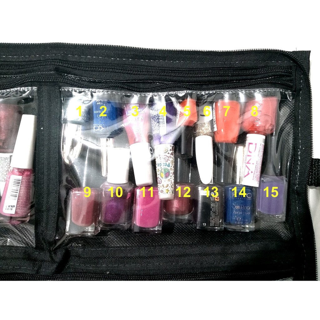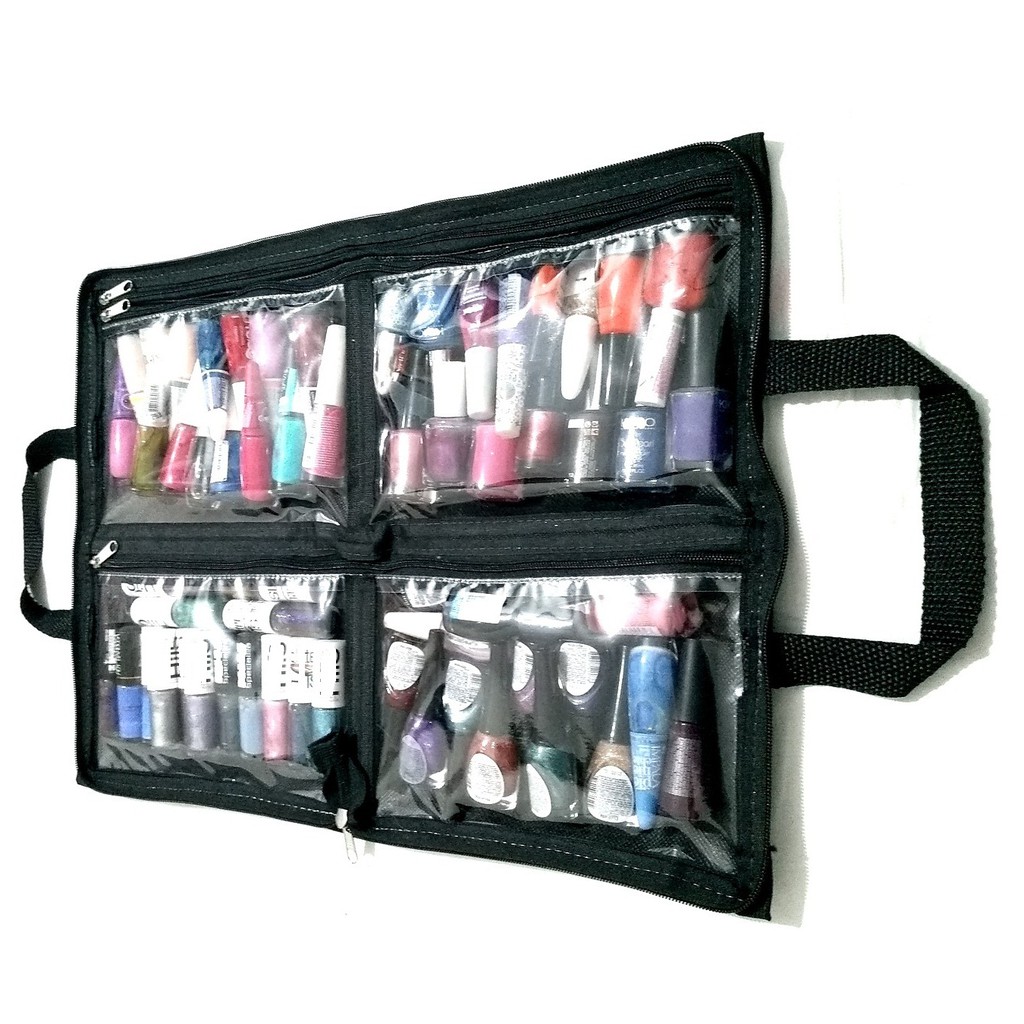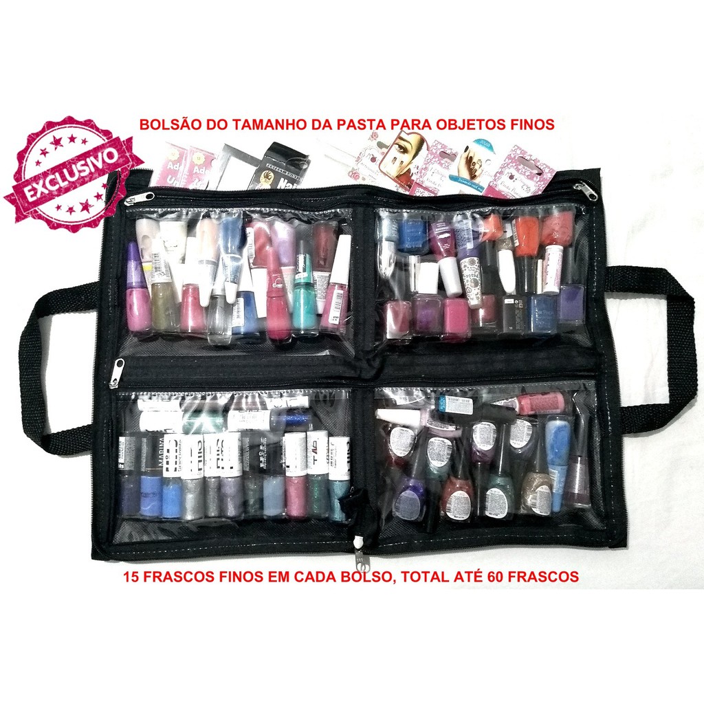 Bolsa Pasta Porta Esmaltes / Maquiagem Manicure Maquiador Domicilio preta para até 60 frascos COM bolsão interno