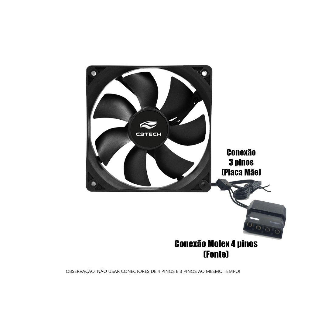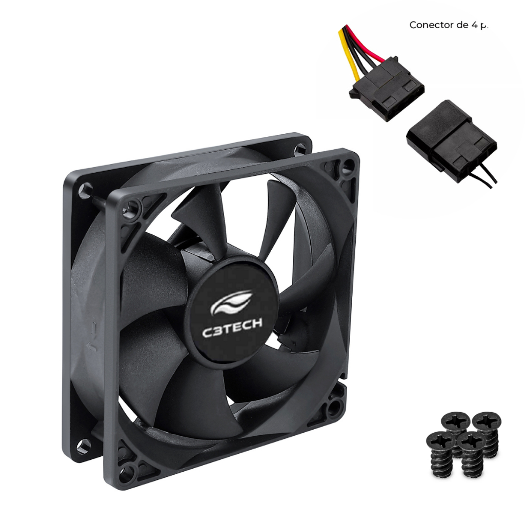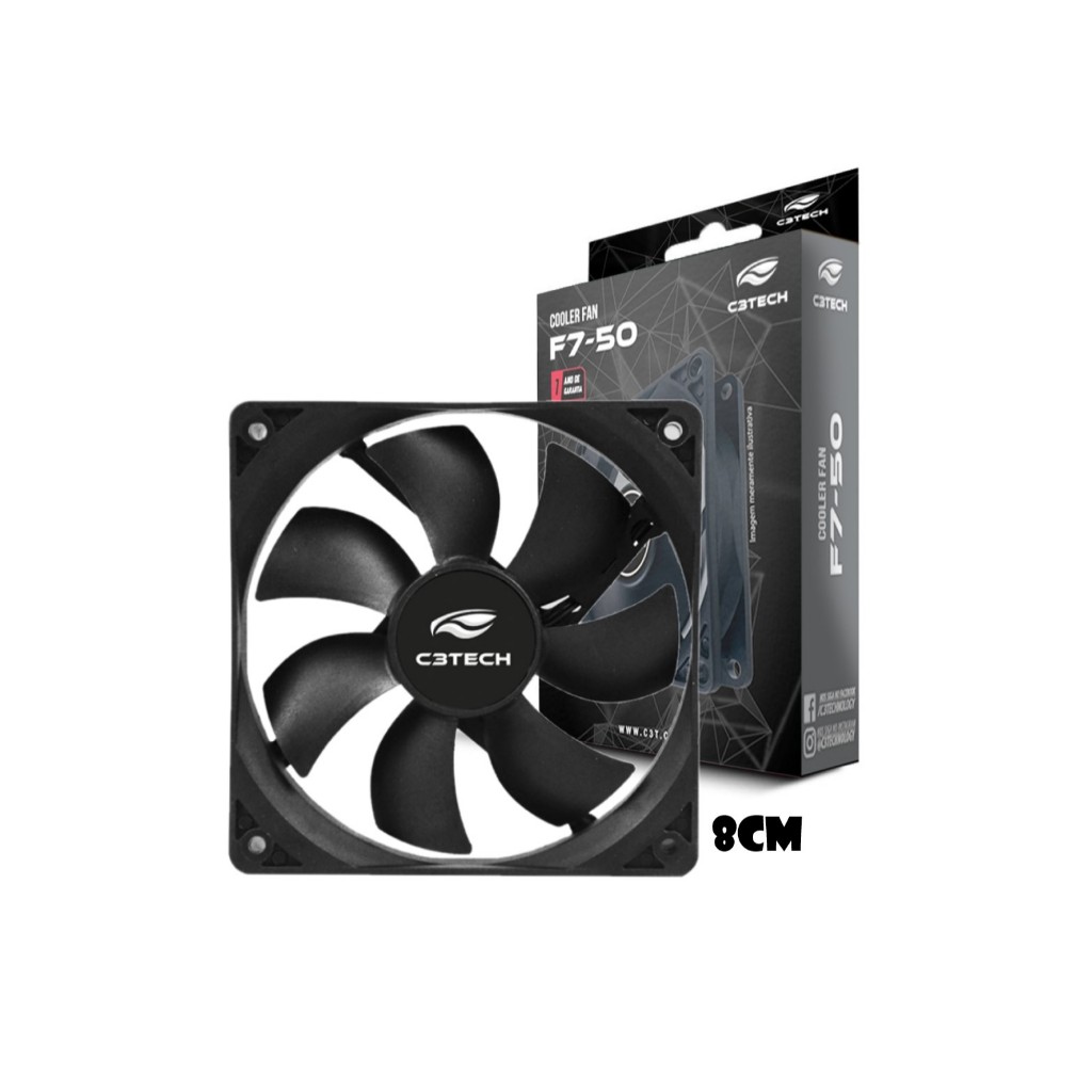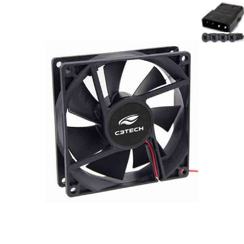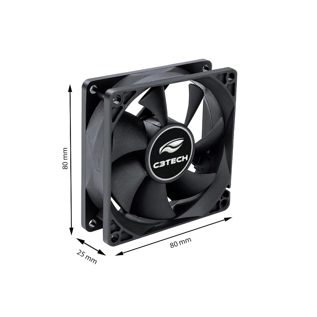 Cooler Fan 80mm C3tech 2200rpm Ventoinha para Gabinete 8cm Preto Sem LED Molex + 3 pinos Placa Mãe