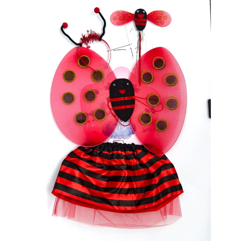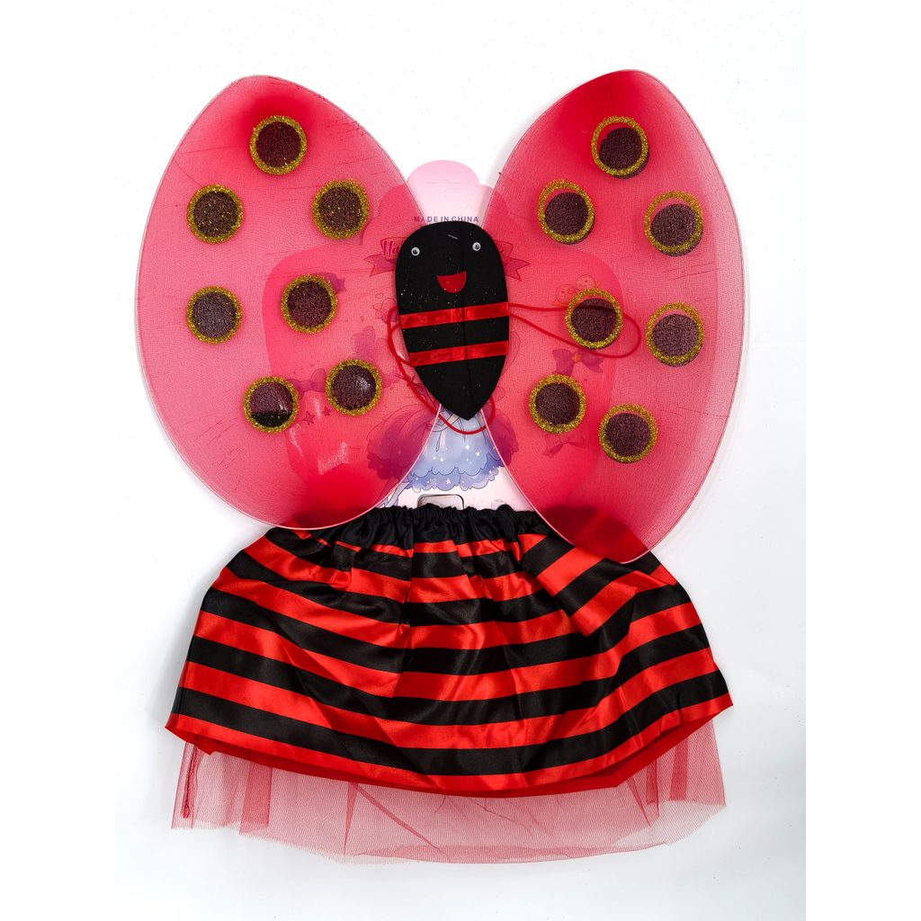 Kit Fada Saia + Tiara + Asa + Varinha Joaninha Abelha Fantasia Festa/ Carnaval -INFANTIL T-557-33