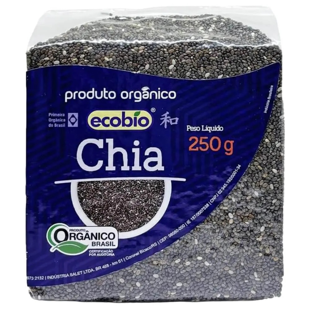 Kit 05 pcts Semente de Chia em Grãos Orgânica 250g cada - Ecobio