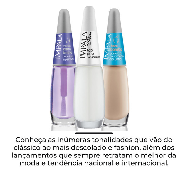 Kit Esmalte Impala Extra Brilho + Top Pop + Base Bomba