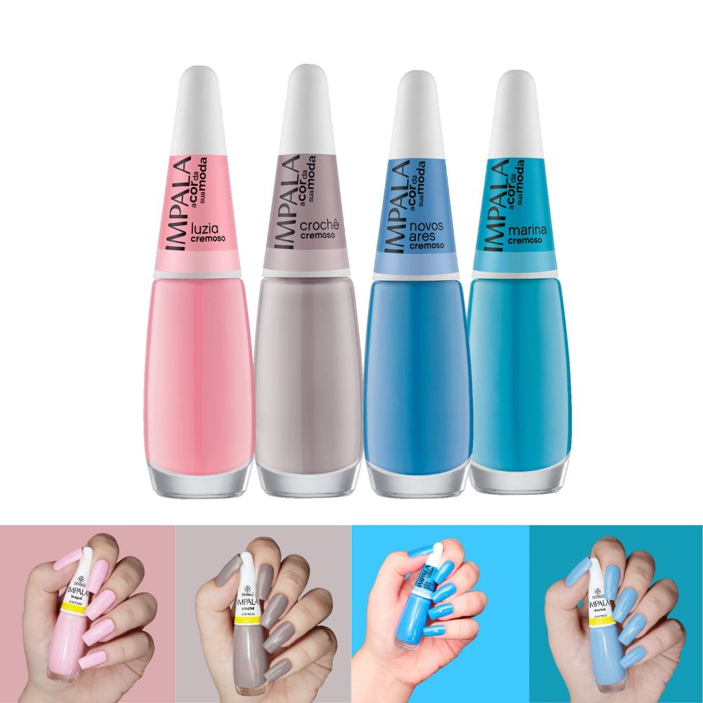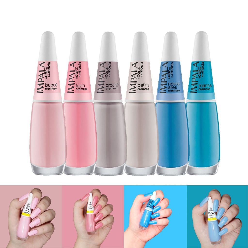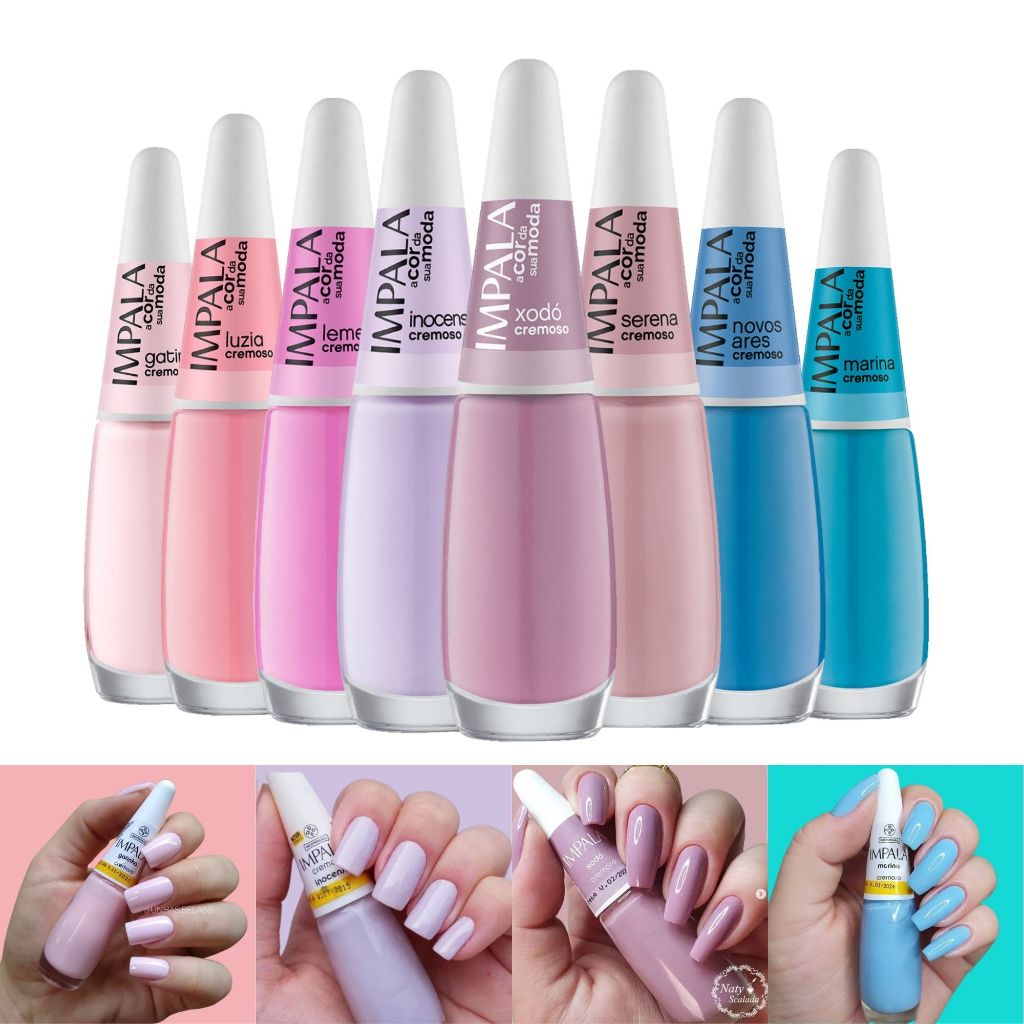 Kit 12 Esmalte Impala Tons Pasteis Rosa e Verde Cremoso Esmaltes Atacado