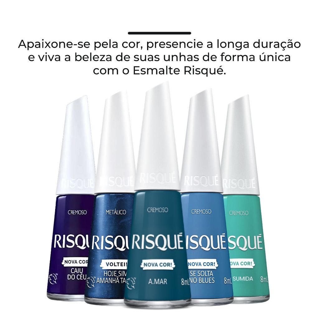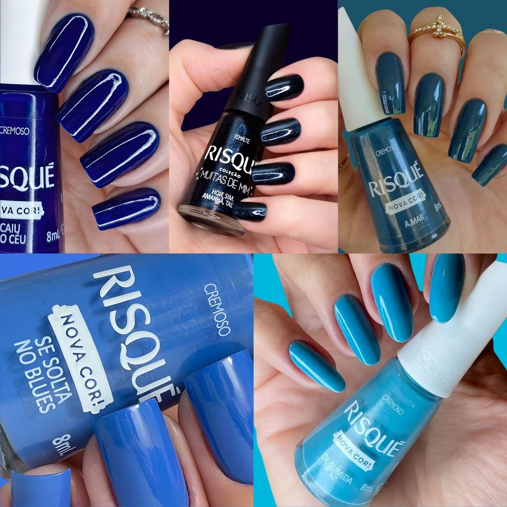 Kit 5 Esmaltes Risqué Tons Azul Glitter Cremoso Esmalte Azul Atacado Nova Coleção