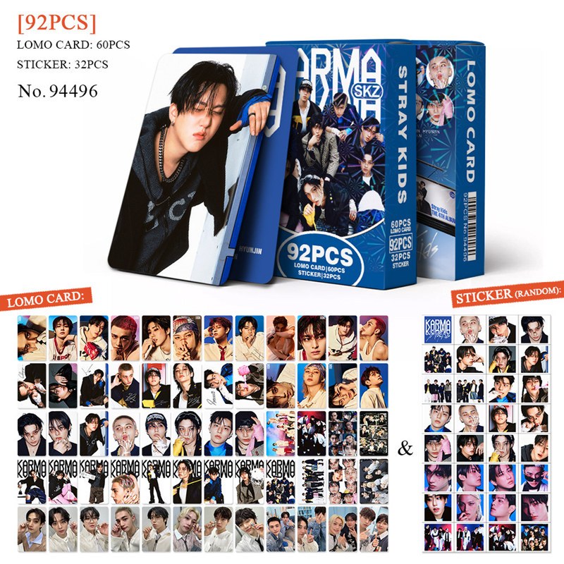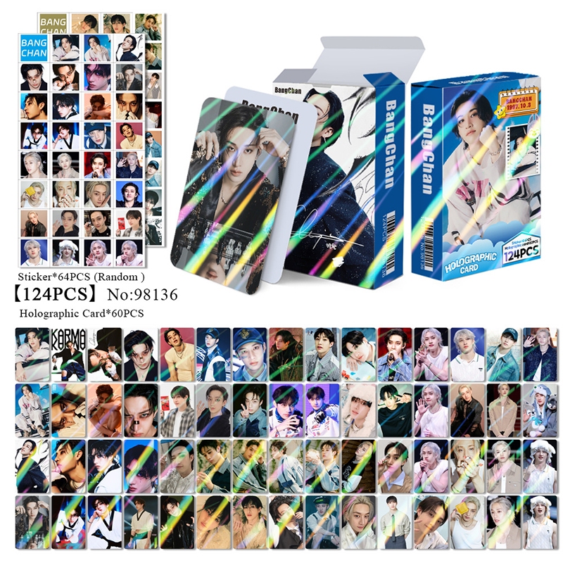 124 Pçs/Caixa Stray Kids Photocards KARMA Holográfico LOMO Cartão FELIX Seungmin Lee Sabe HAN Adesivo