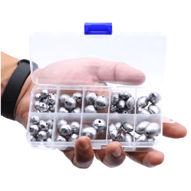 Kit Chumbadas Pesca Leve e Média | Caixa Organizadora com Pesos Variados | Bola ou Oliva