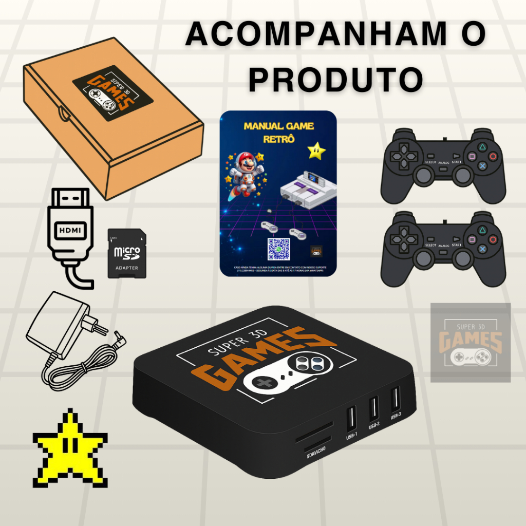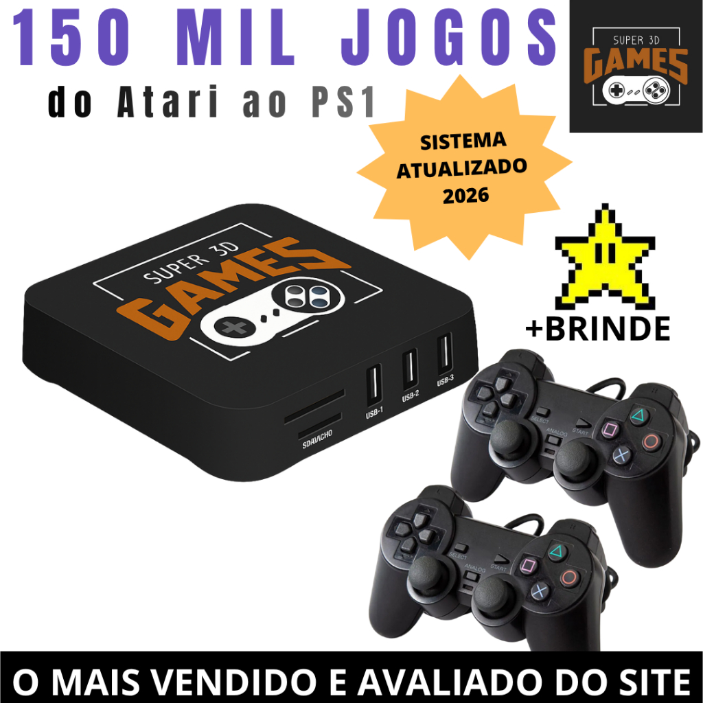 Super Console Retro Game Classico 150 mil jogos Super 3D Games com 2 Controles
