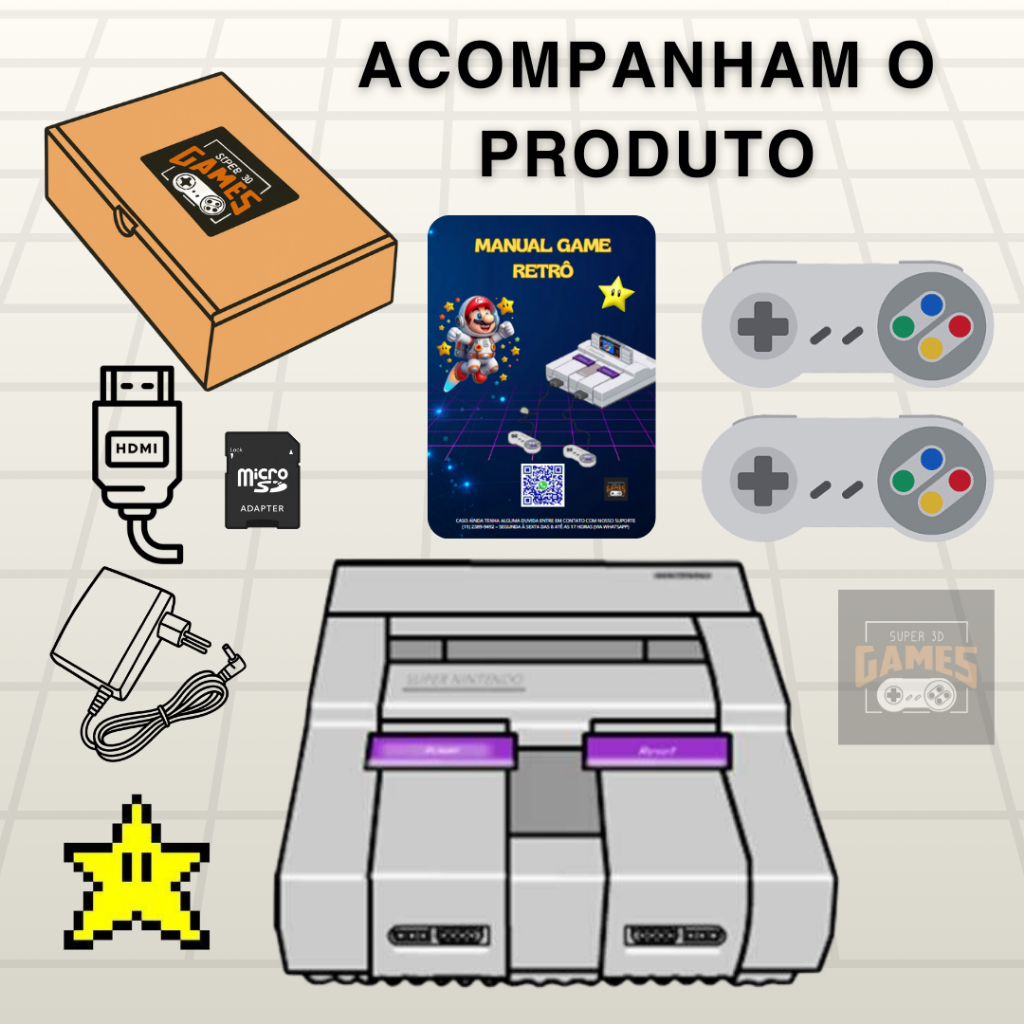 Game Console Retro Super Nintendo 3D Games 150 Mil Jogos Classicos Com 2 Controles