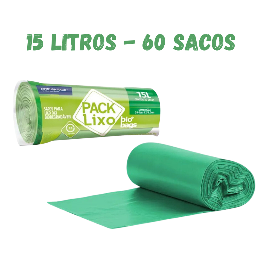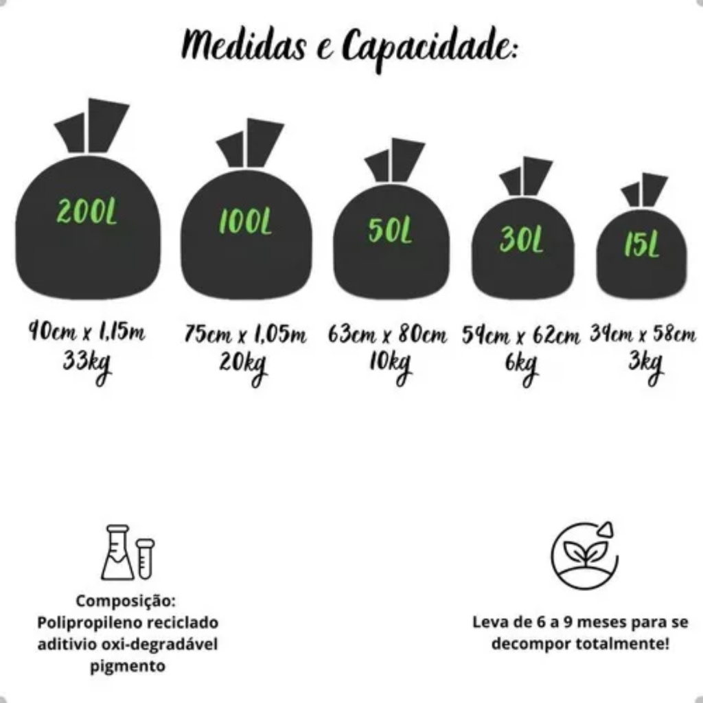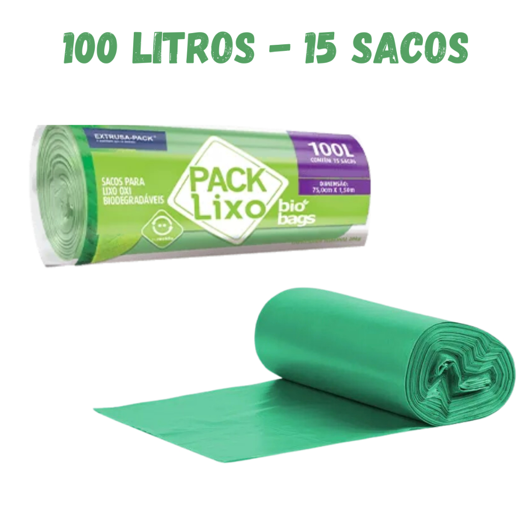 Saco Lixo Sustentável Biodegradável Verde 15/30/50/100l