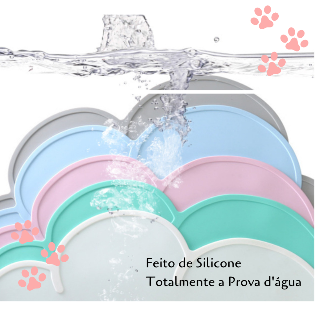 Tapete Silicone Nuvem Luxo Suporte Sousplat Pote de Ração Gato Cachorro Pet