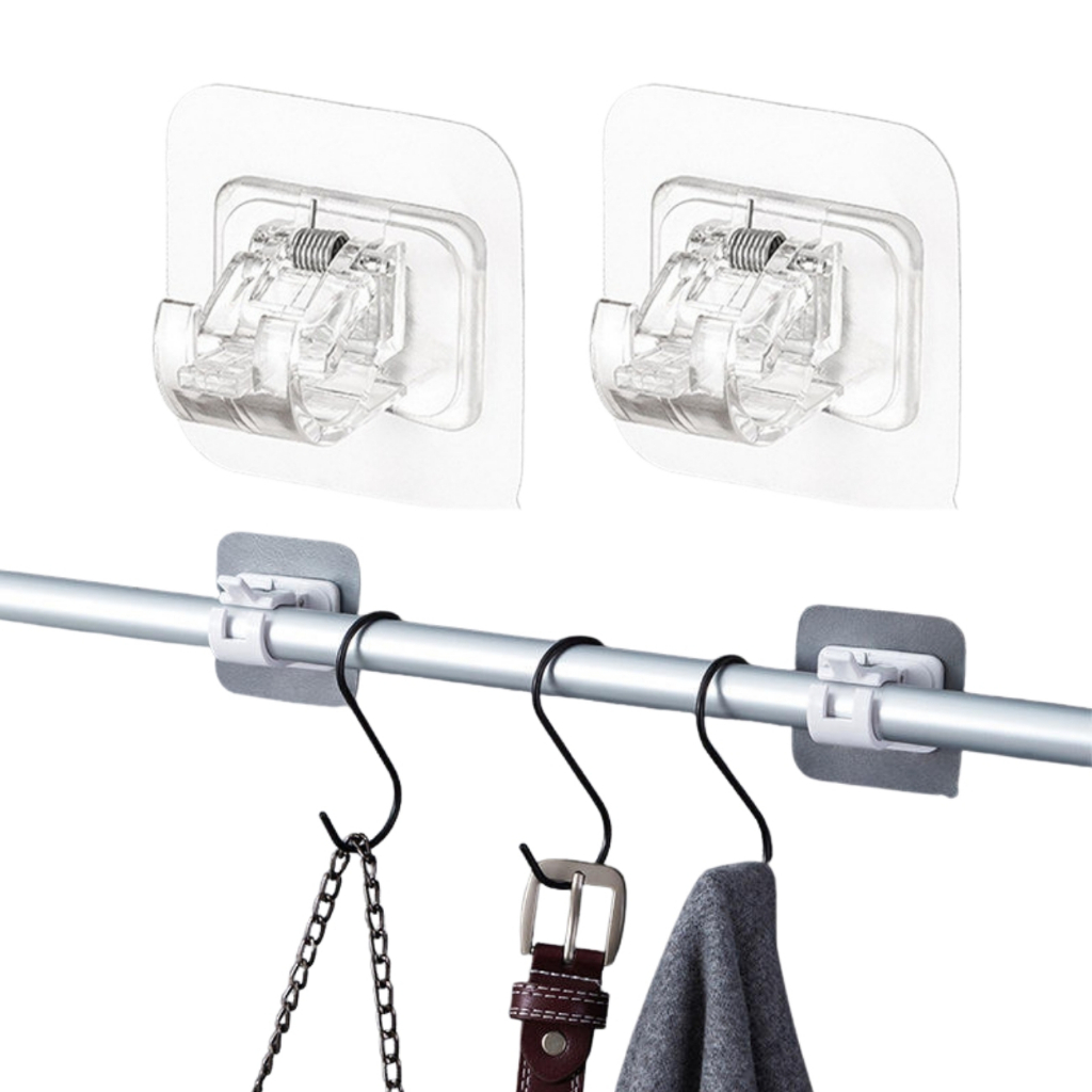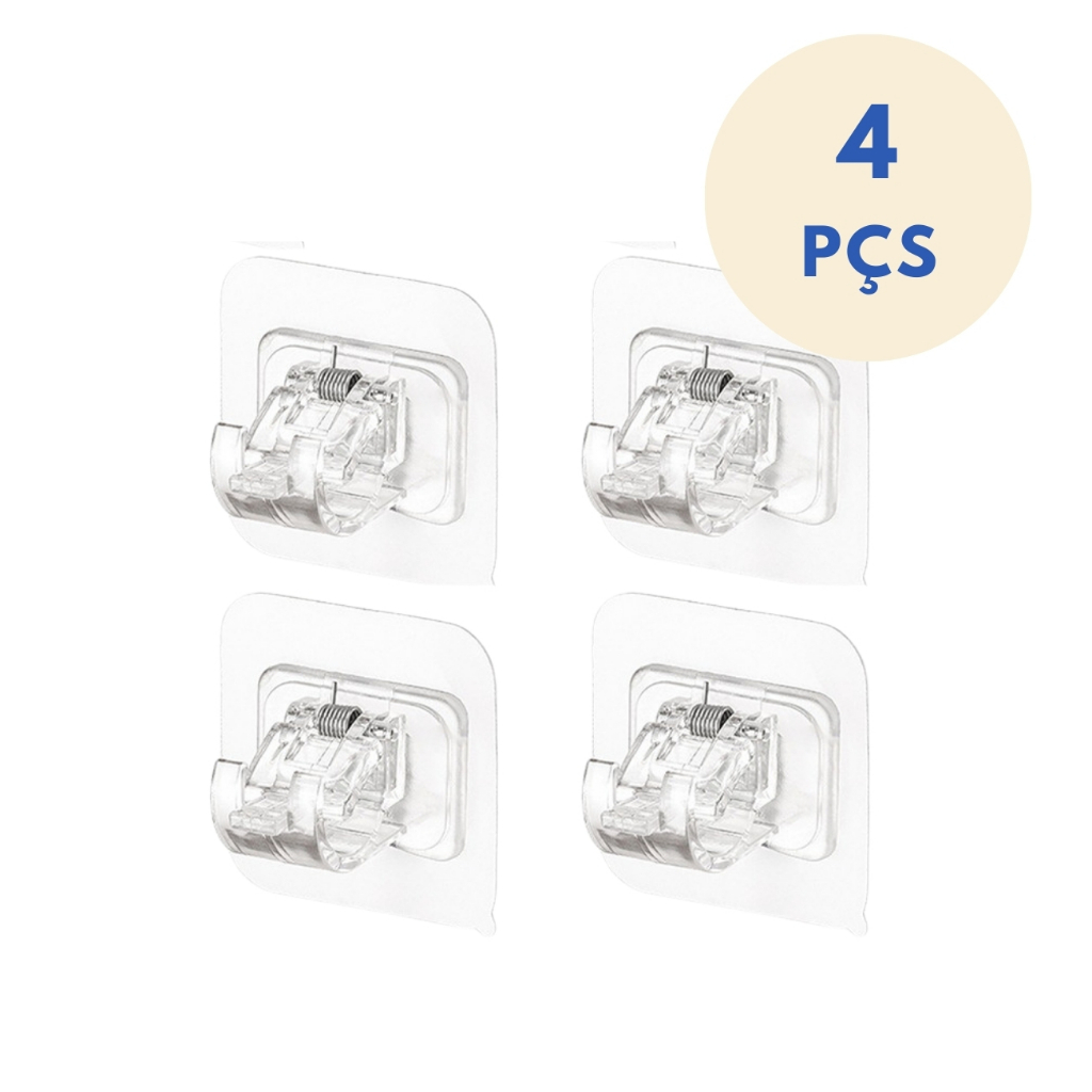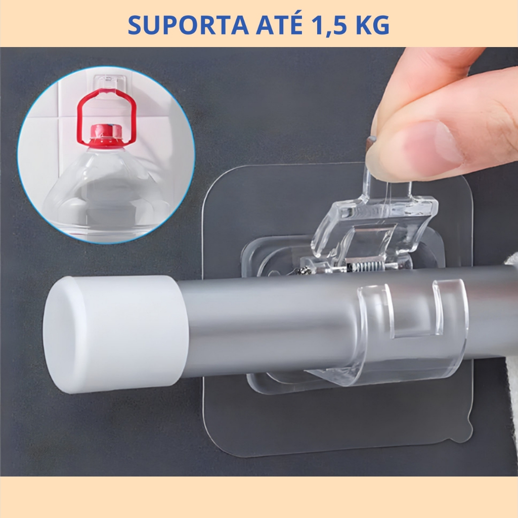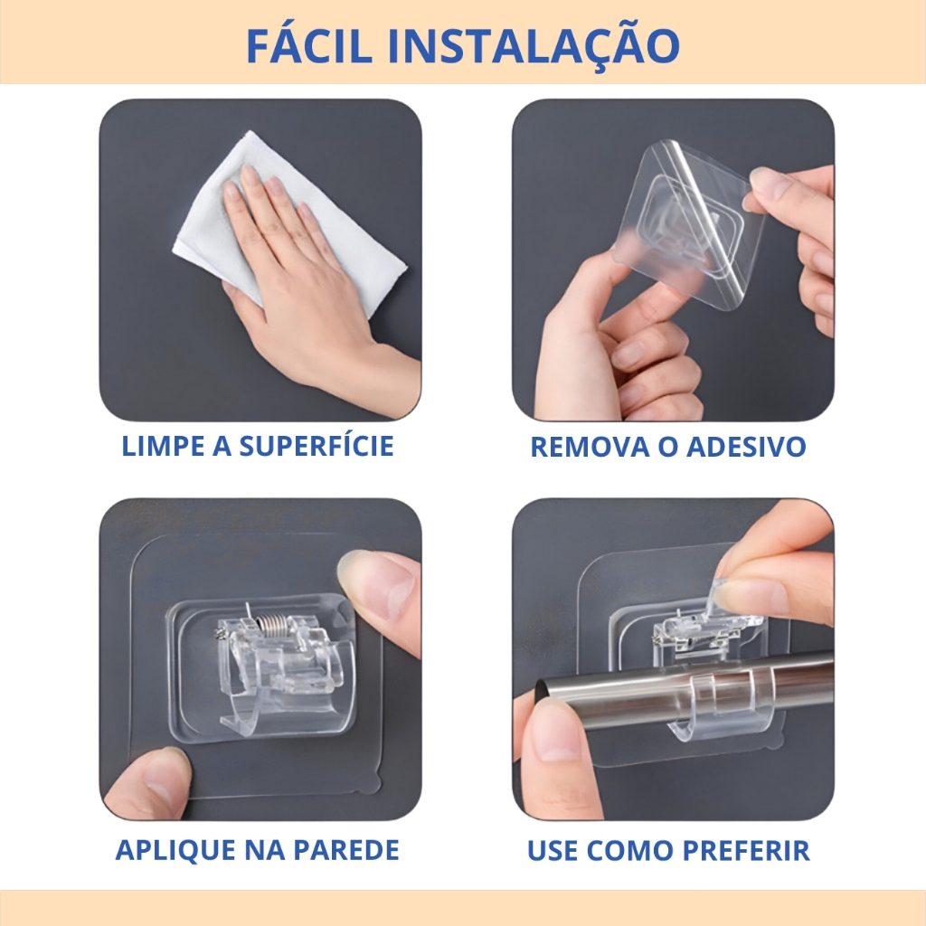 Kit Ganchos Adesivos Suporte Varão para Trilho Cortina Cozinha Banheiro Pendurar Sem furar Parede