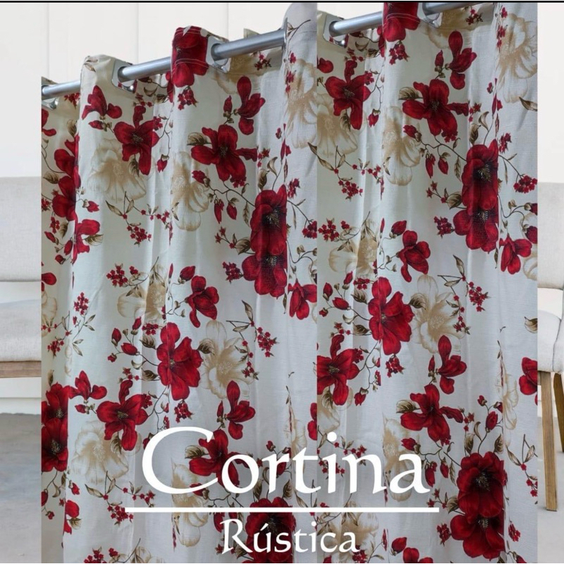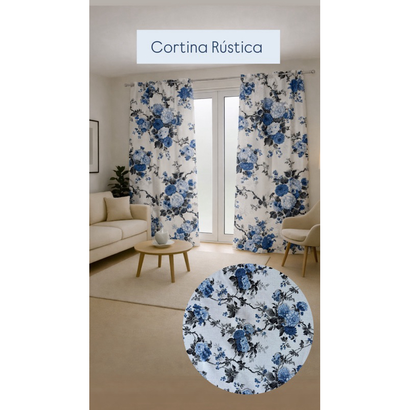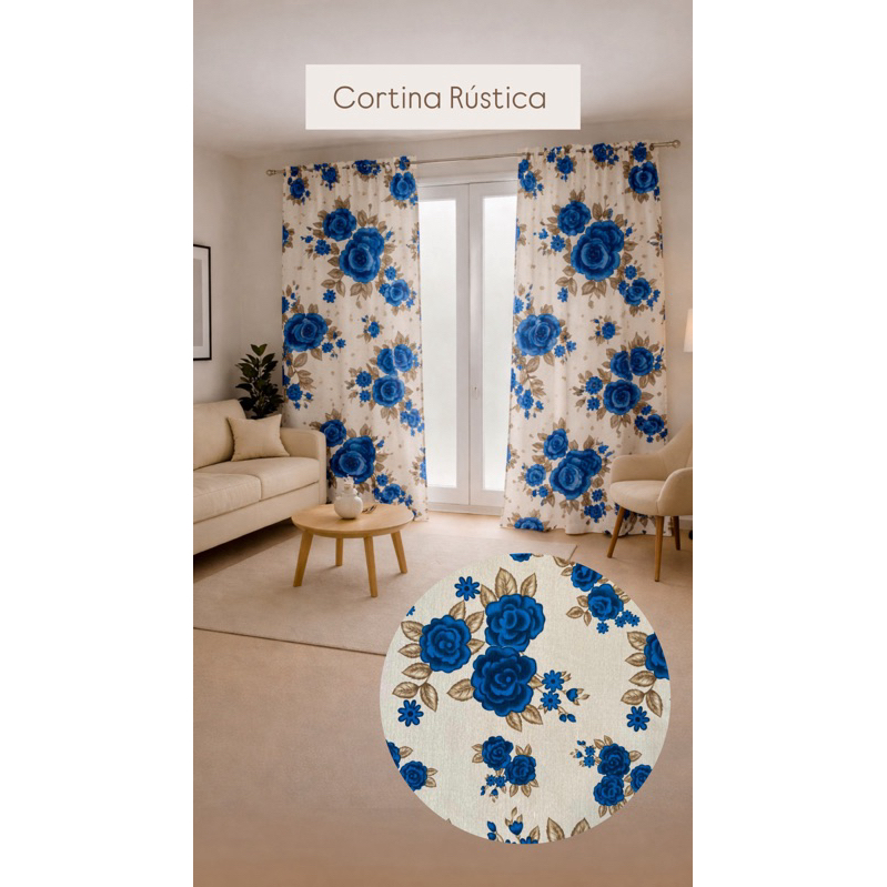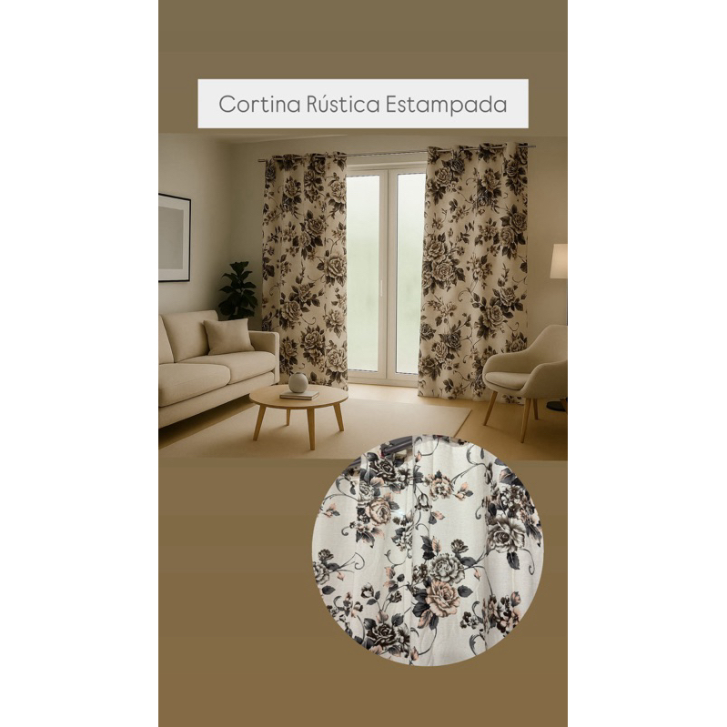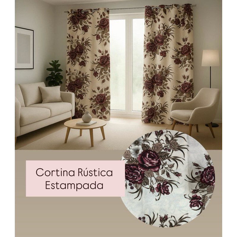 Cortina Rústica Estampada 3,00m x 2,70m Sala Quarto Tecido Grosso Decoração Moderna