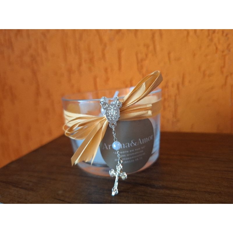vela perfumada rosas católica oração reza meditação presente + mini terço
