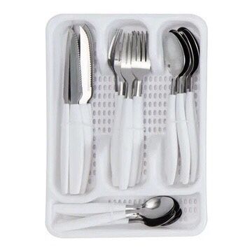 Jogo de Talheres 25 peças Porta talher garfo faca colher utensílios de cozinha Faqueiro 24 peças