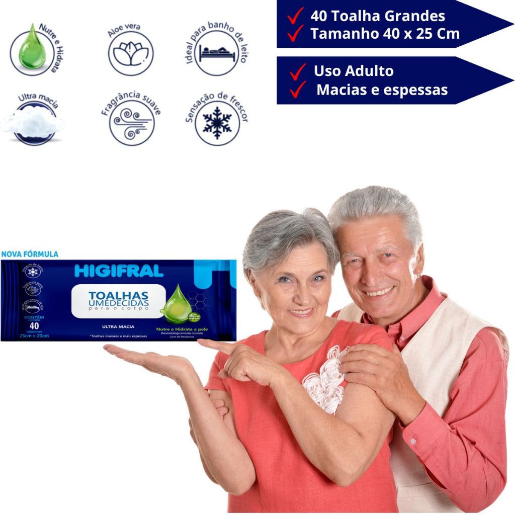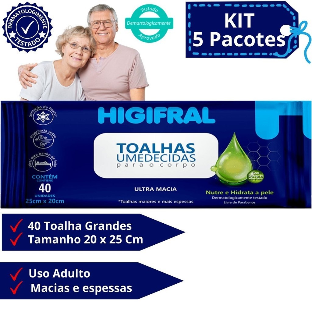 Toalhas Geriatricas Lenços de Banho de Leito Adulto Higifral Kit 5 Pacotes