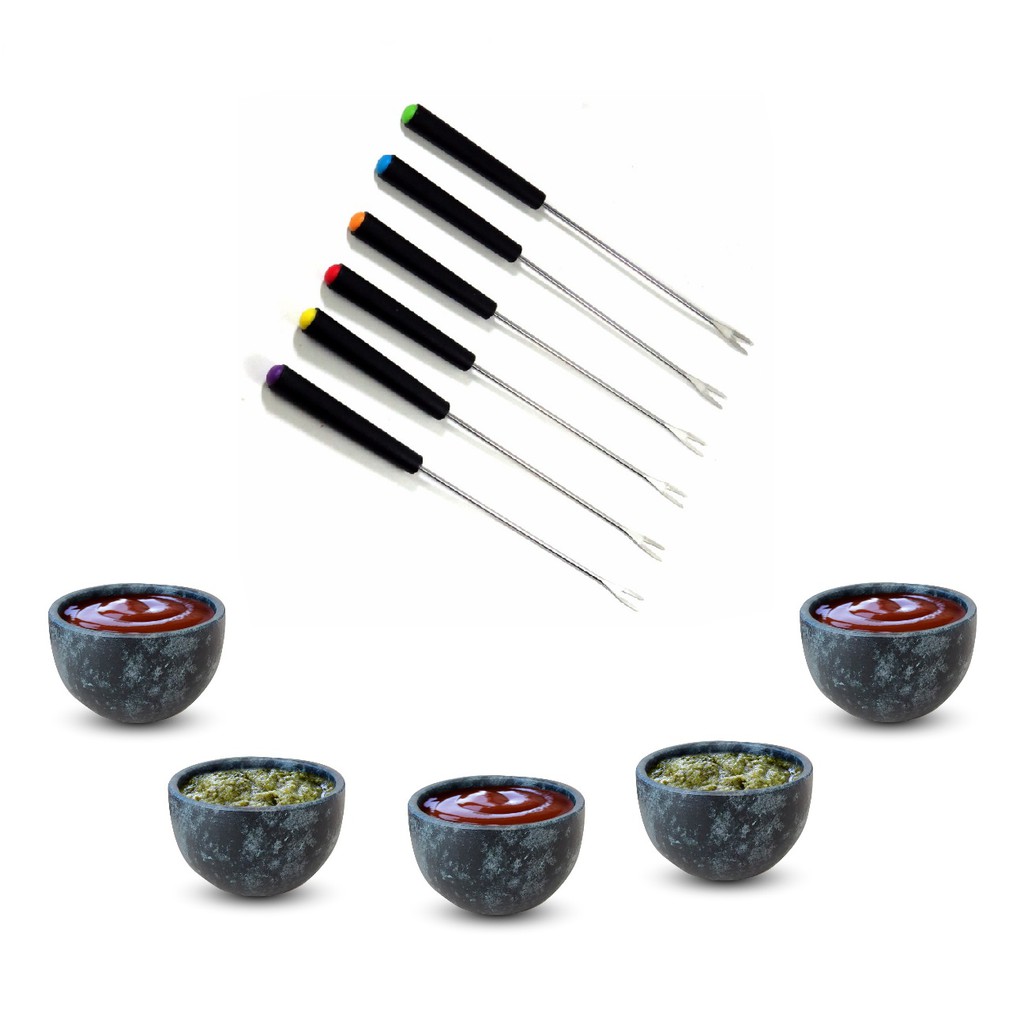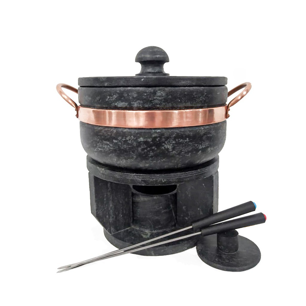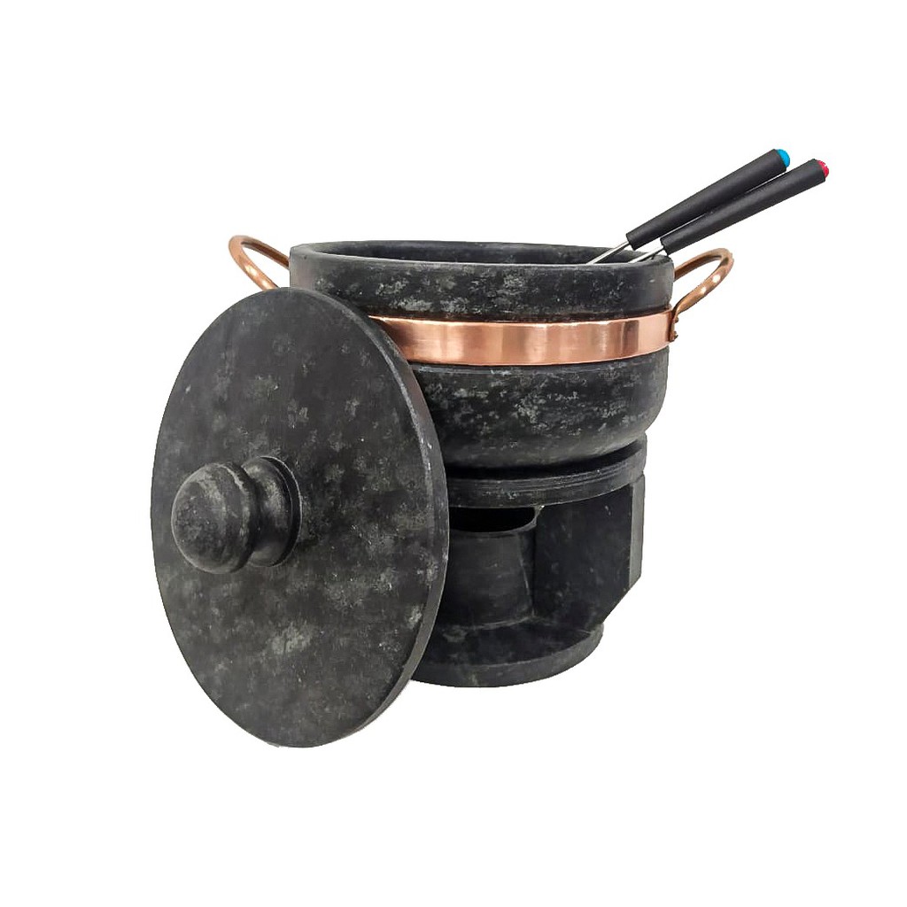 Fondue Em Pedra Sabão 1,5 Litros + 4 Tigelas + 6 Garfinhos