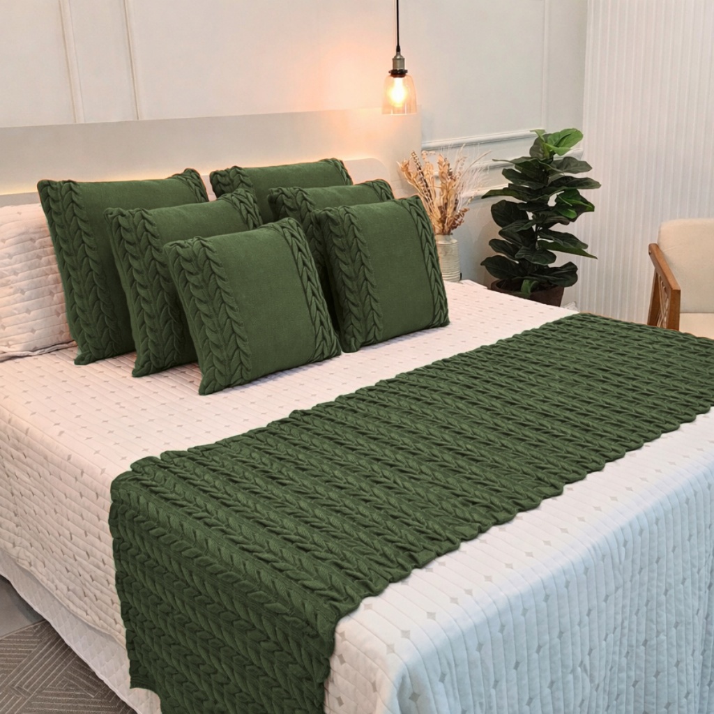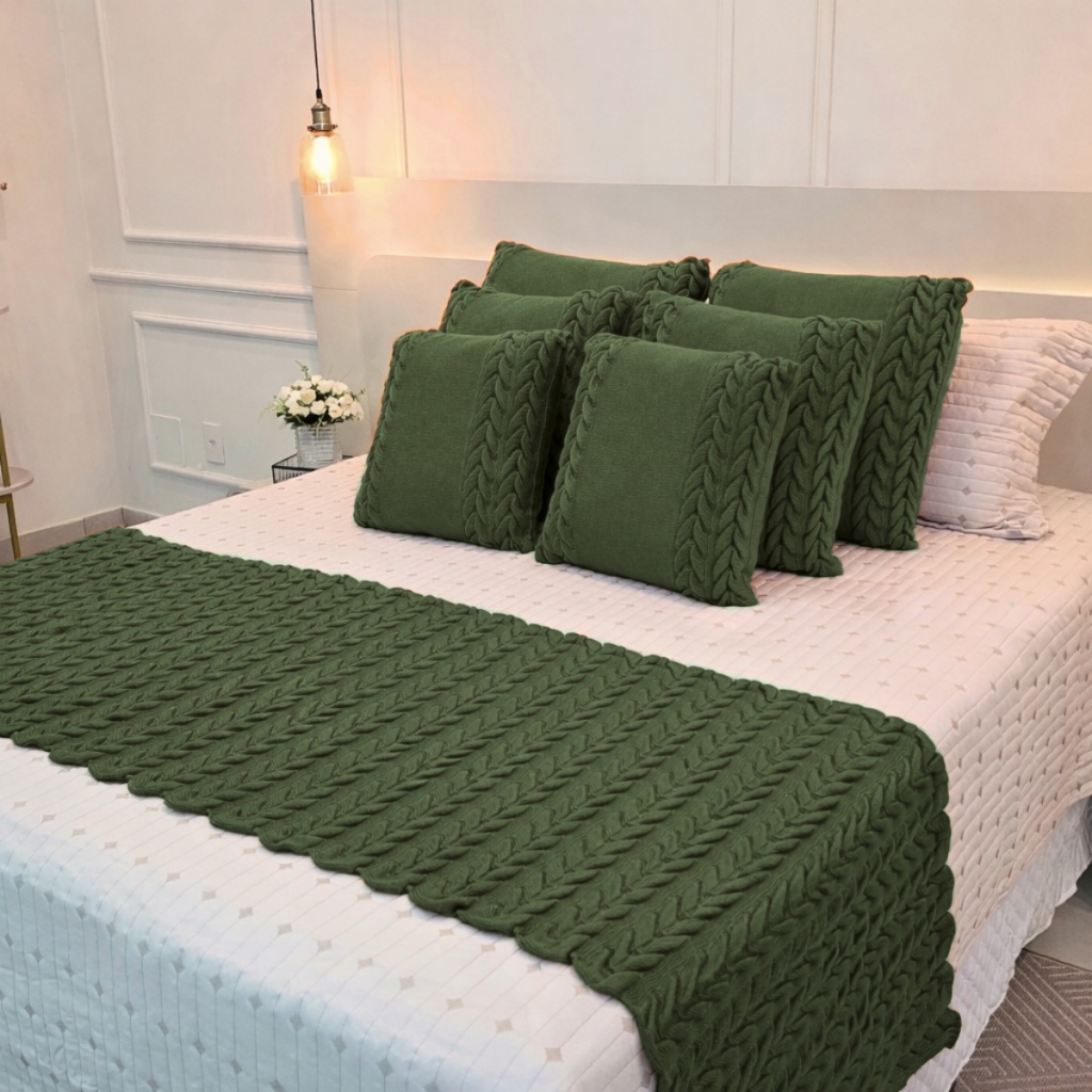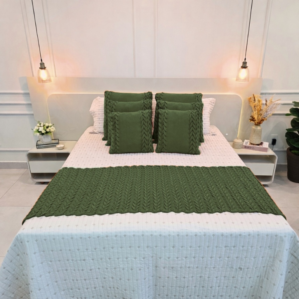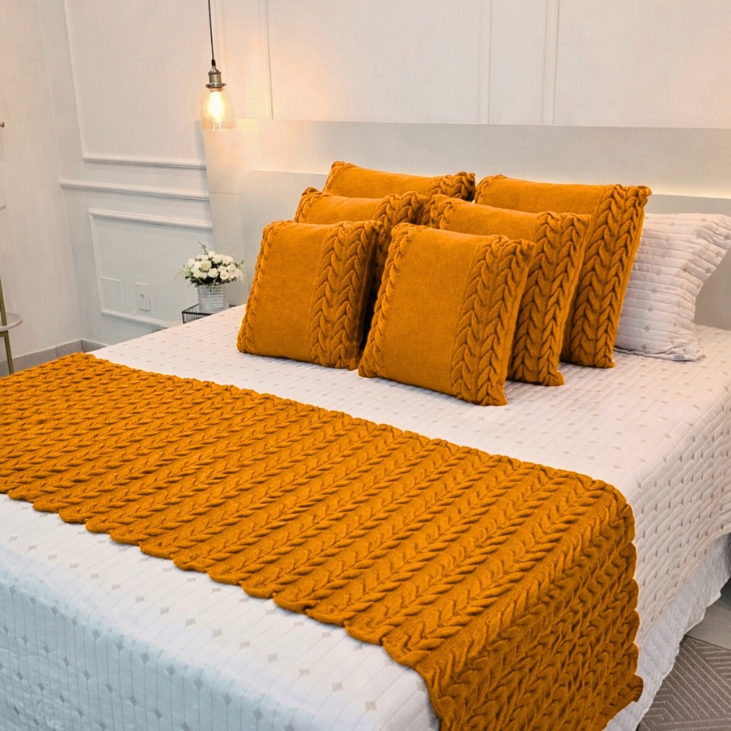 Kit Peseira Manta Tricot Sofá Cama Casal Queen King Aconchego Home Decor + 4 Capas Almofadas (2 de 50x50 e 2 de 60x60)
