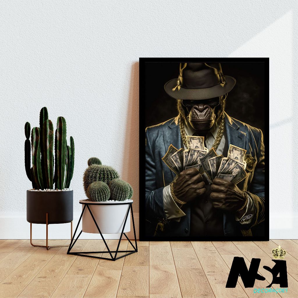 Quadro decorativo para sala quarto escritorio macaco gangster