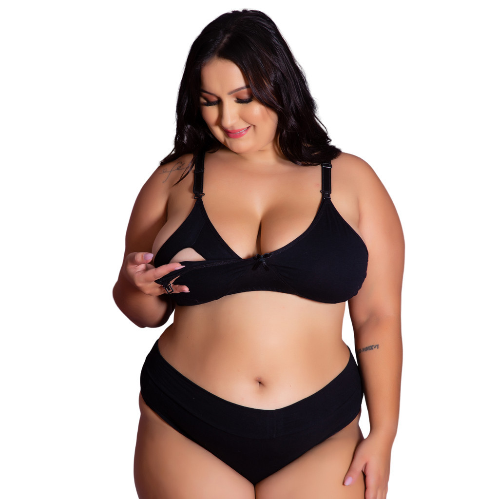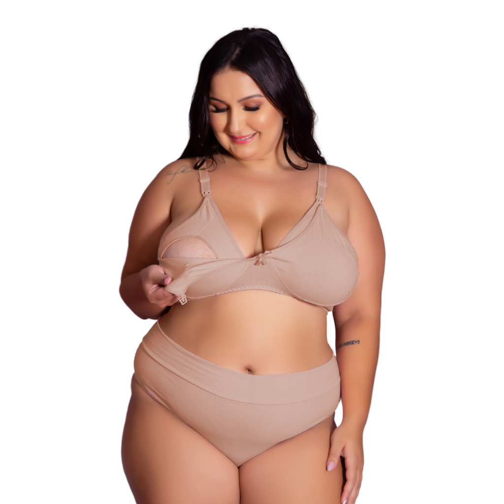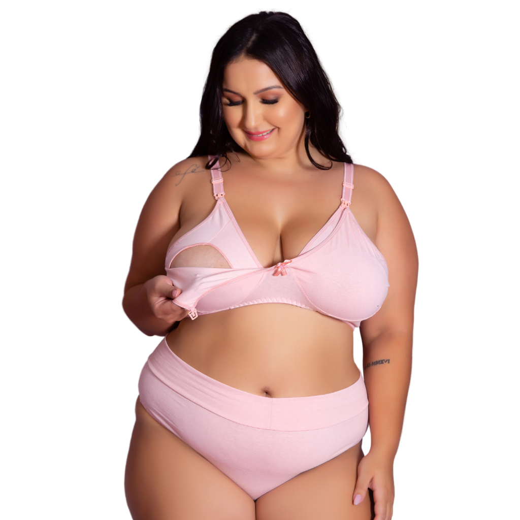 Conjunto Sutiã e Calcinha Cotton Amamentação Plus Size Tamanho Grande Pós Parto Gestante