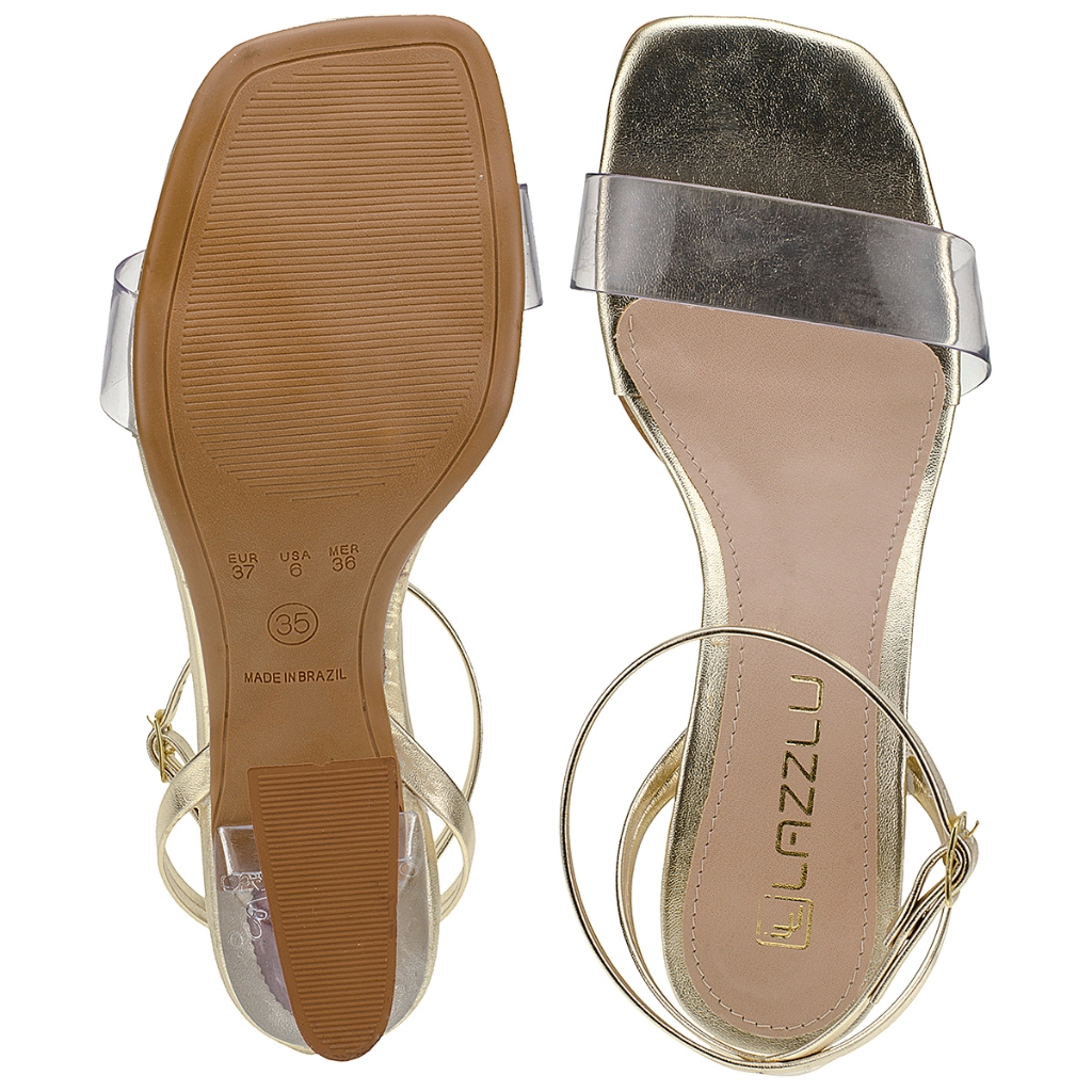 Sandália Feminina Salto Médio Acrílico Transparente Vinil