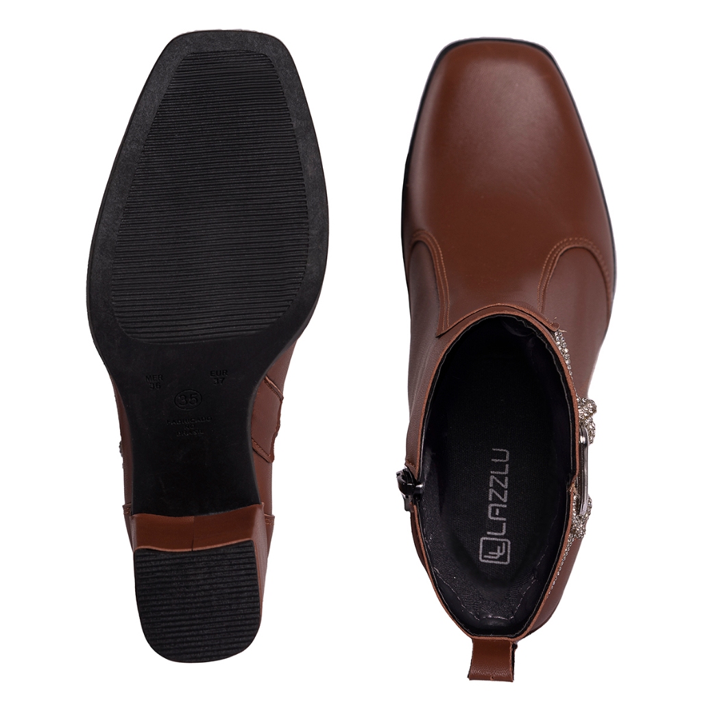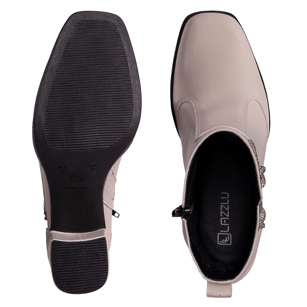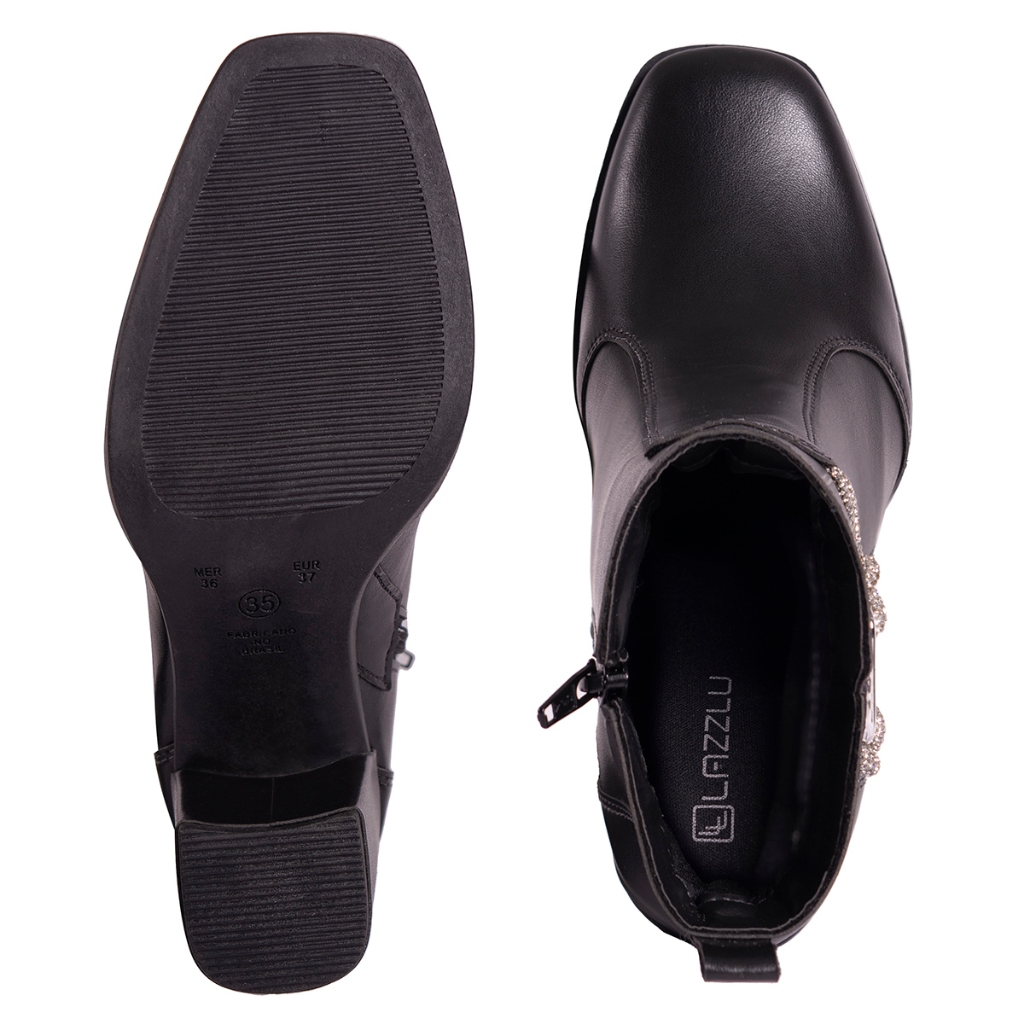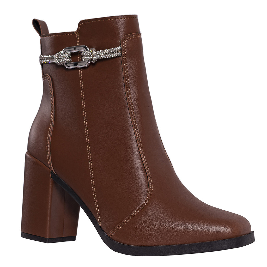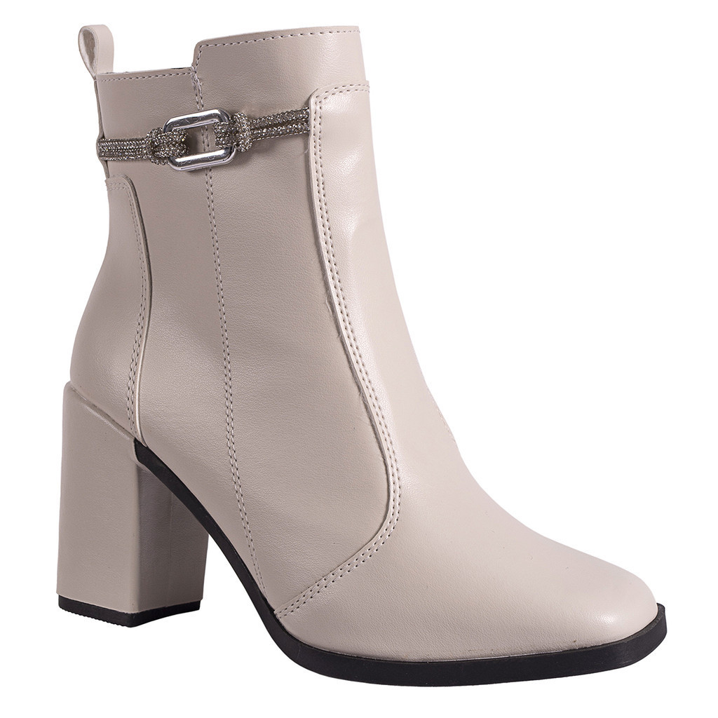 Bota Feminina Salto Bloco Grosso Cano Curto Coturno Brilho
