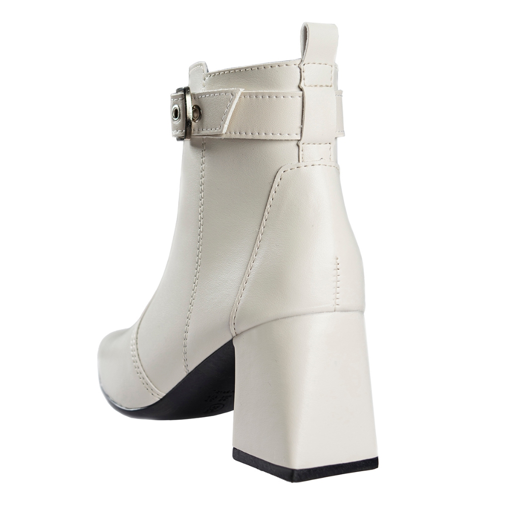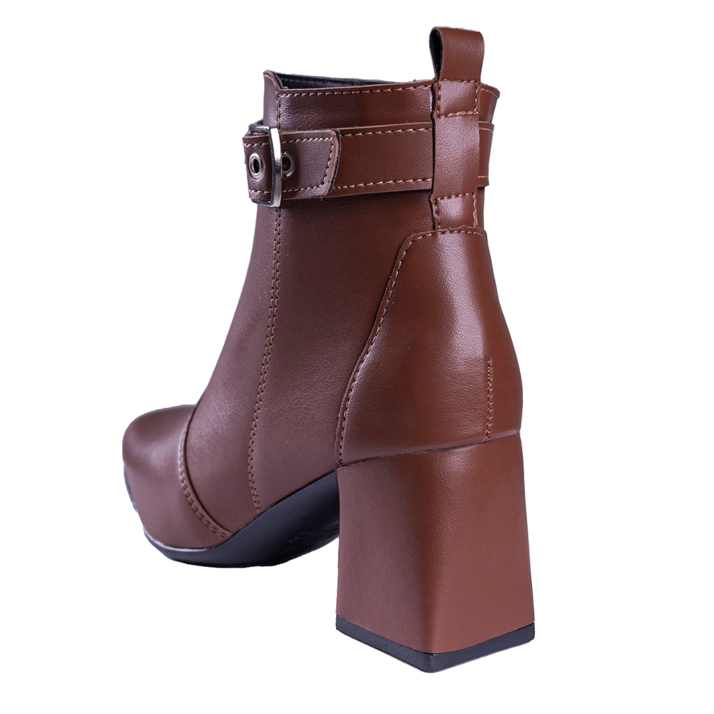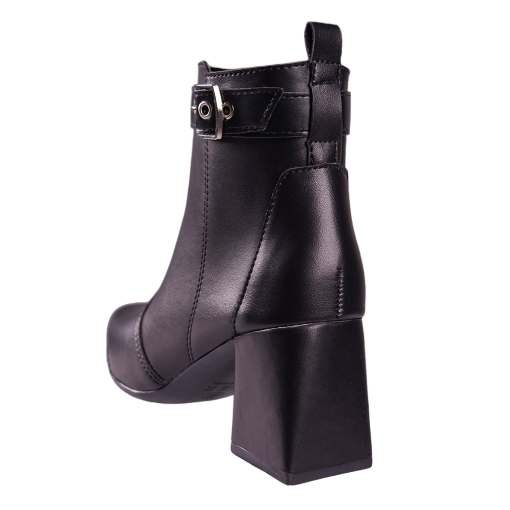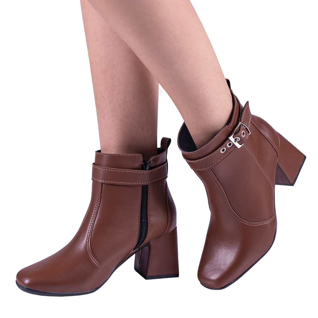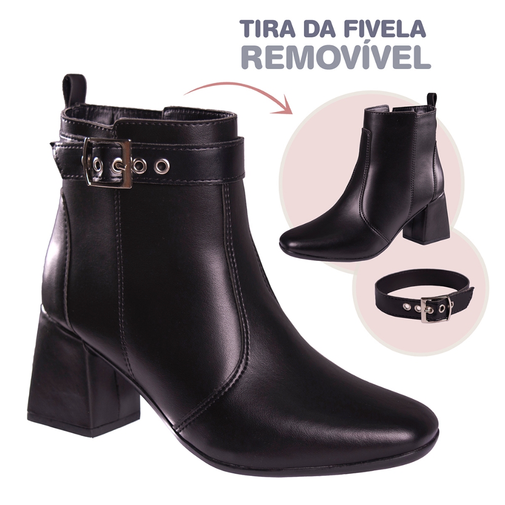 Bota Feminina Salto Bloco Grosso Quadrado Cano Curto Fivela