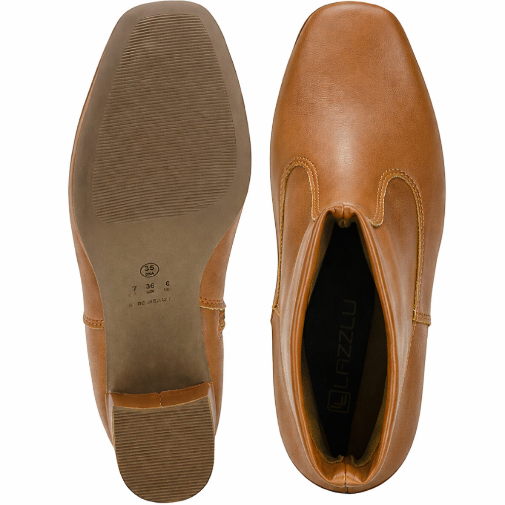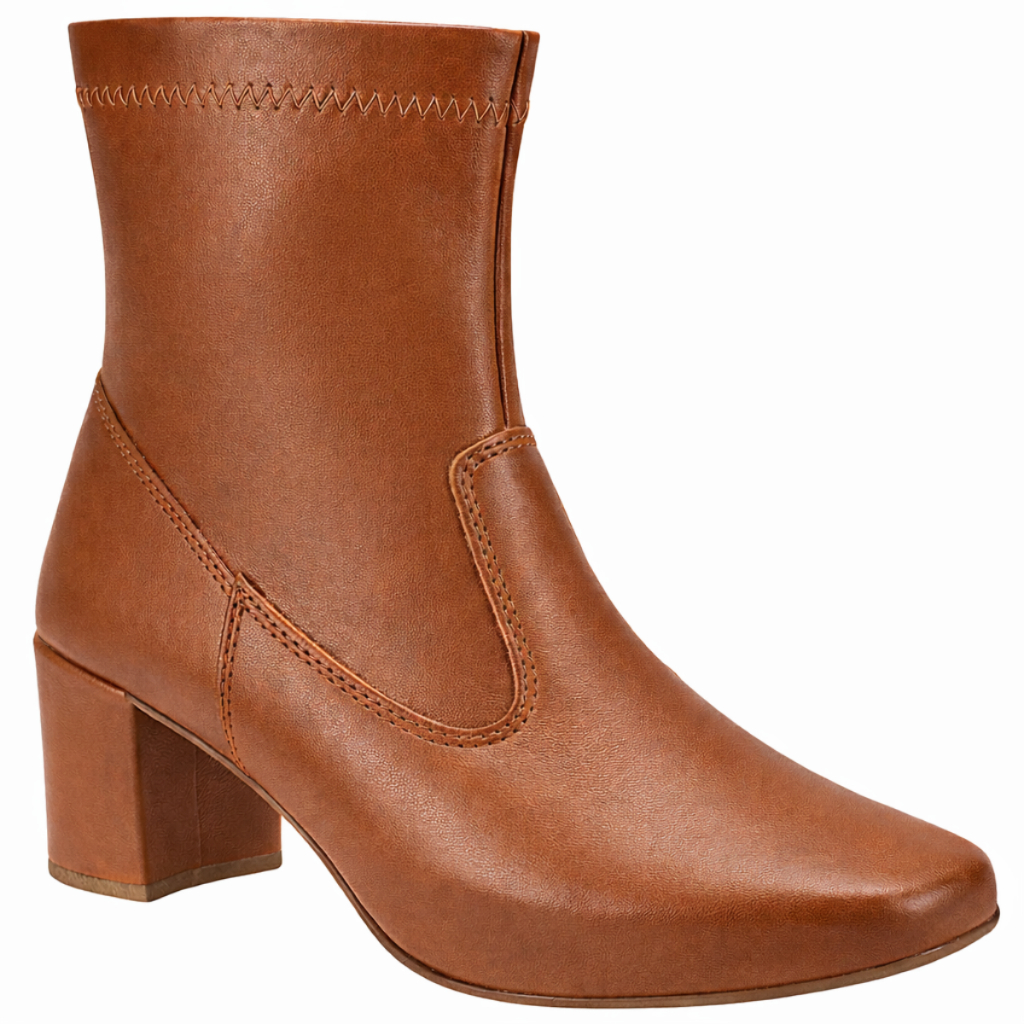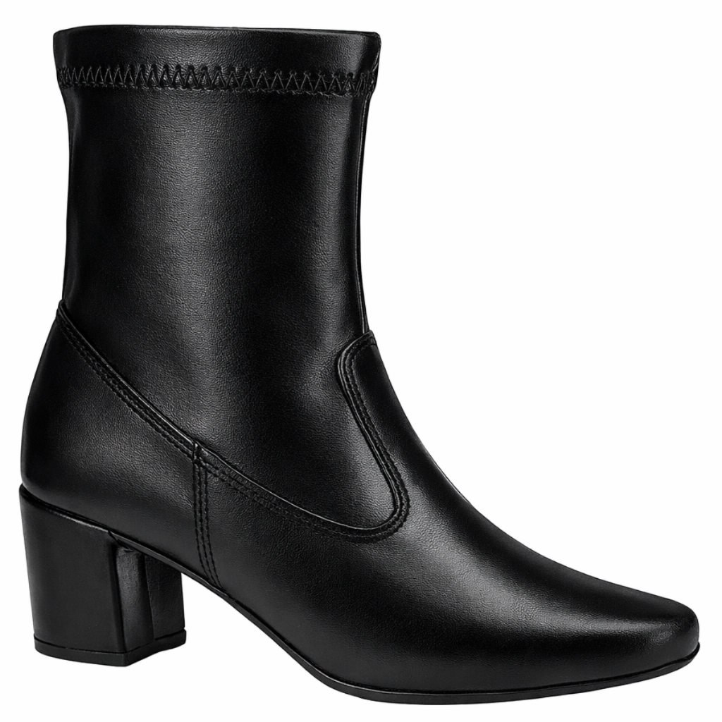 Bota Feminina Stretch Cano Médio Bico Quadrado Salto Grosso