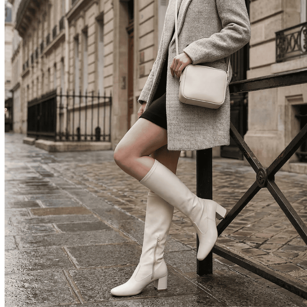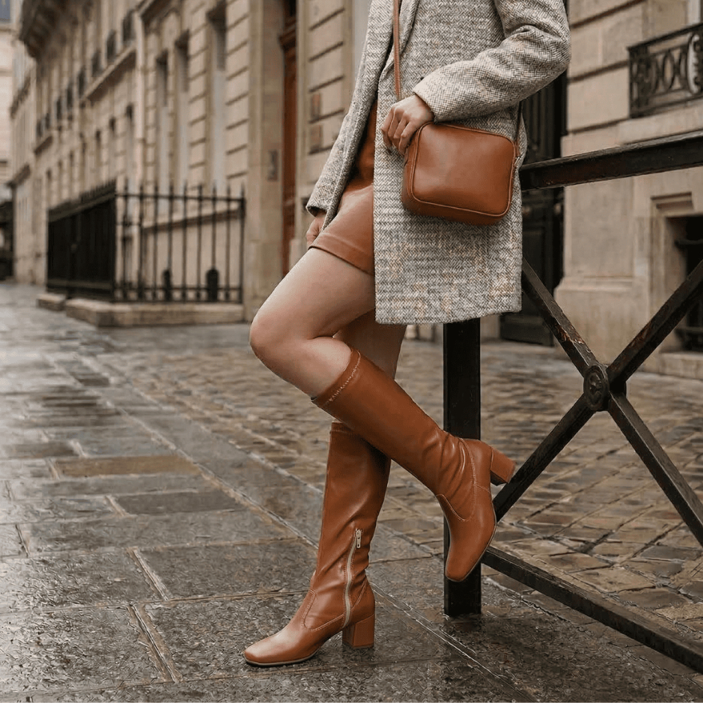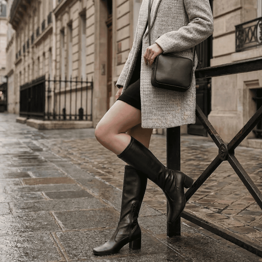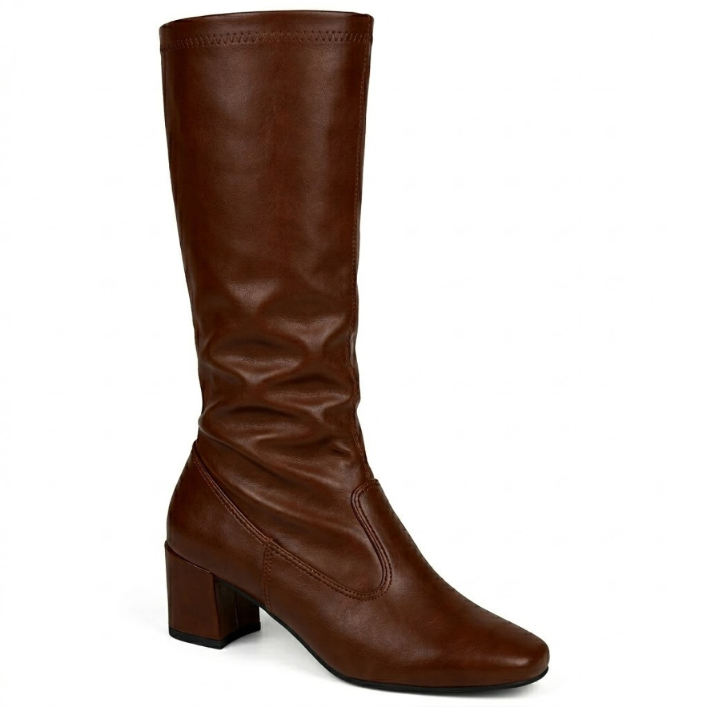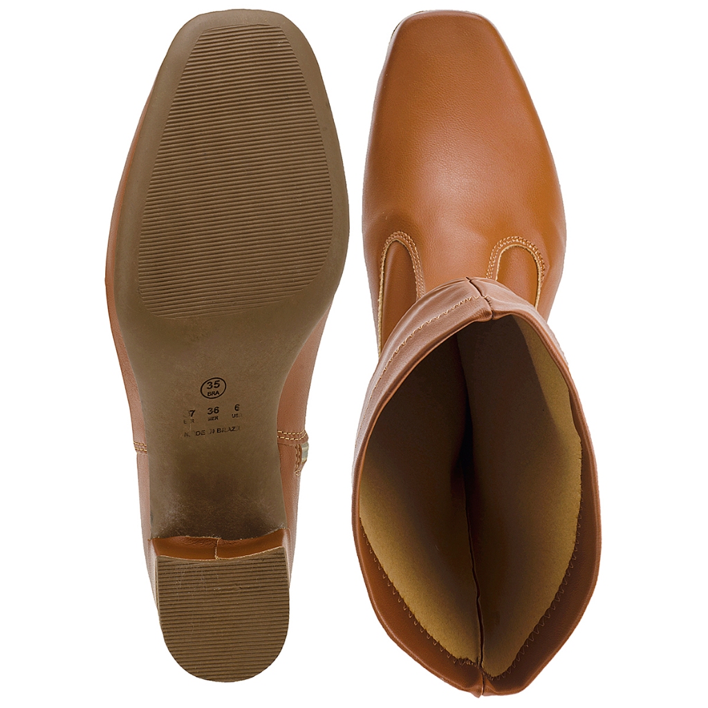 Bota Feminina Stretch Cano Alto Bico Quadrado Salto Grosso