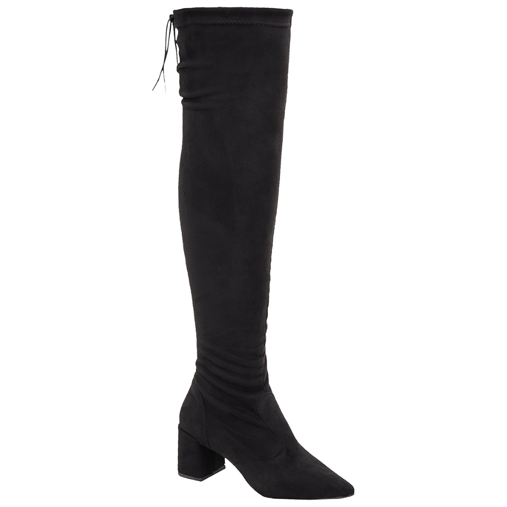 Bota Feminina Over The Knee com Ajuste Salto Bloco Bico Fino