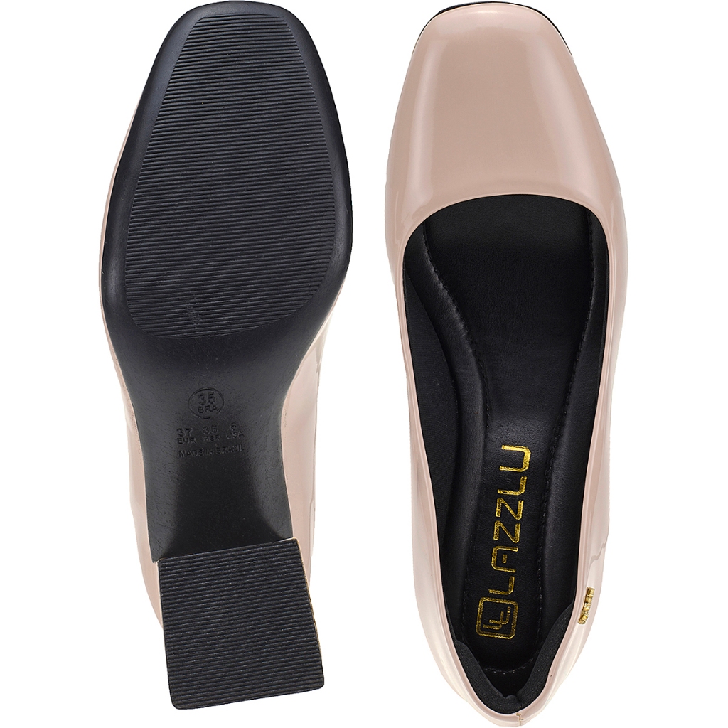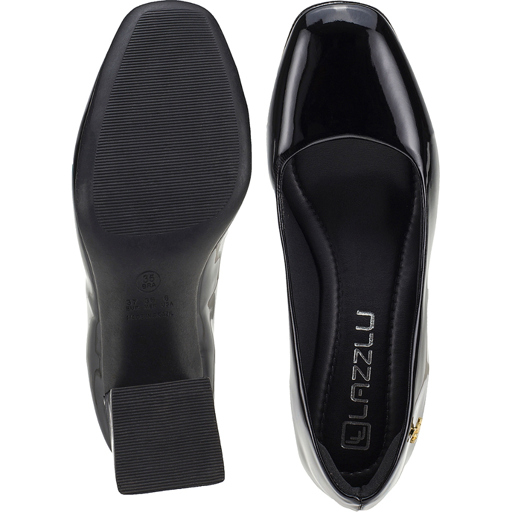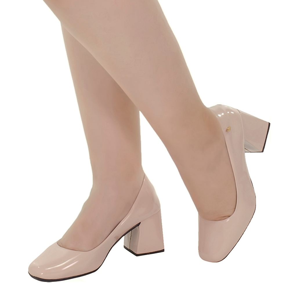 Sapato Scarpin Feminino Salto Bloco Bico Quadrado Verniz