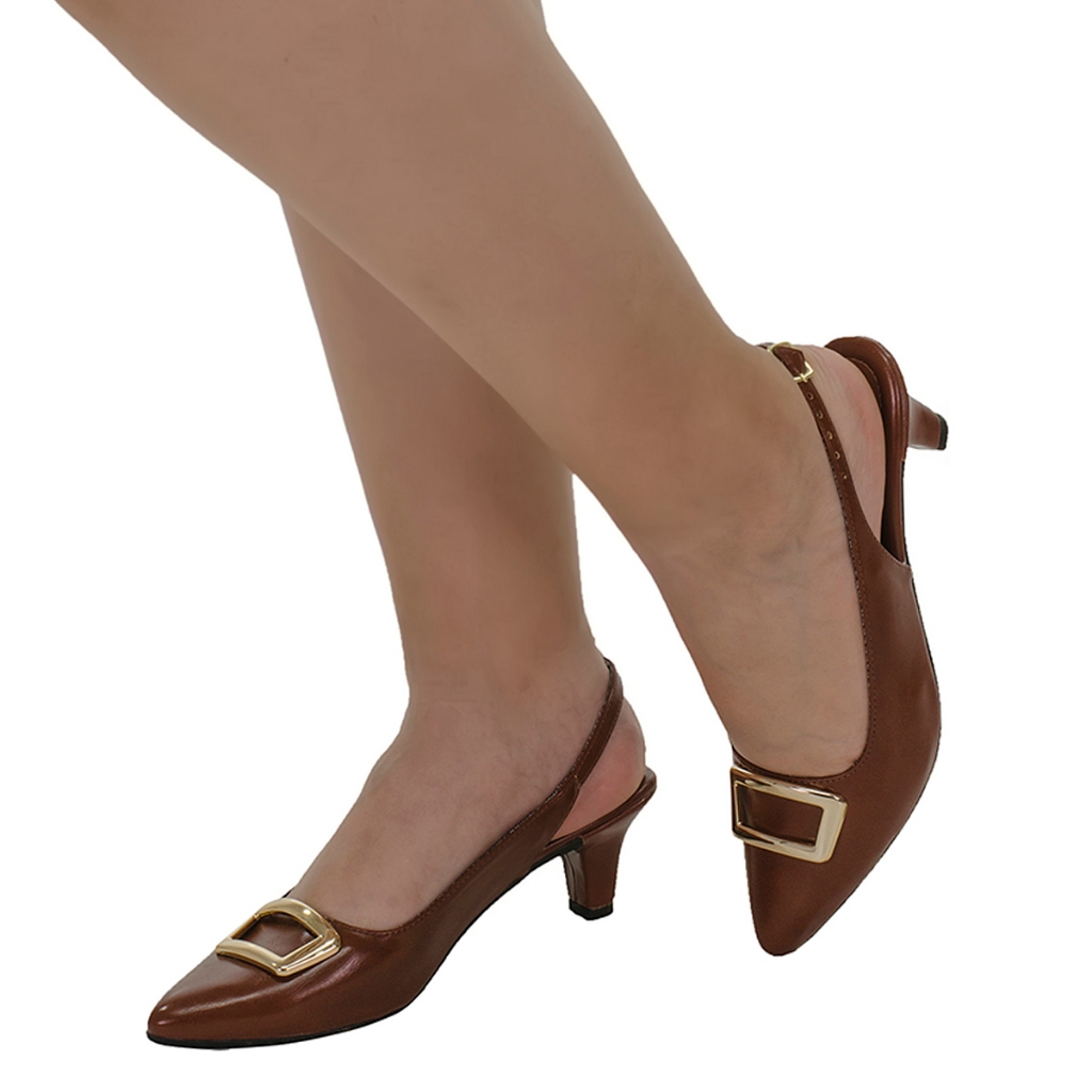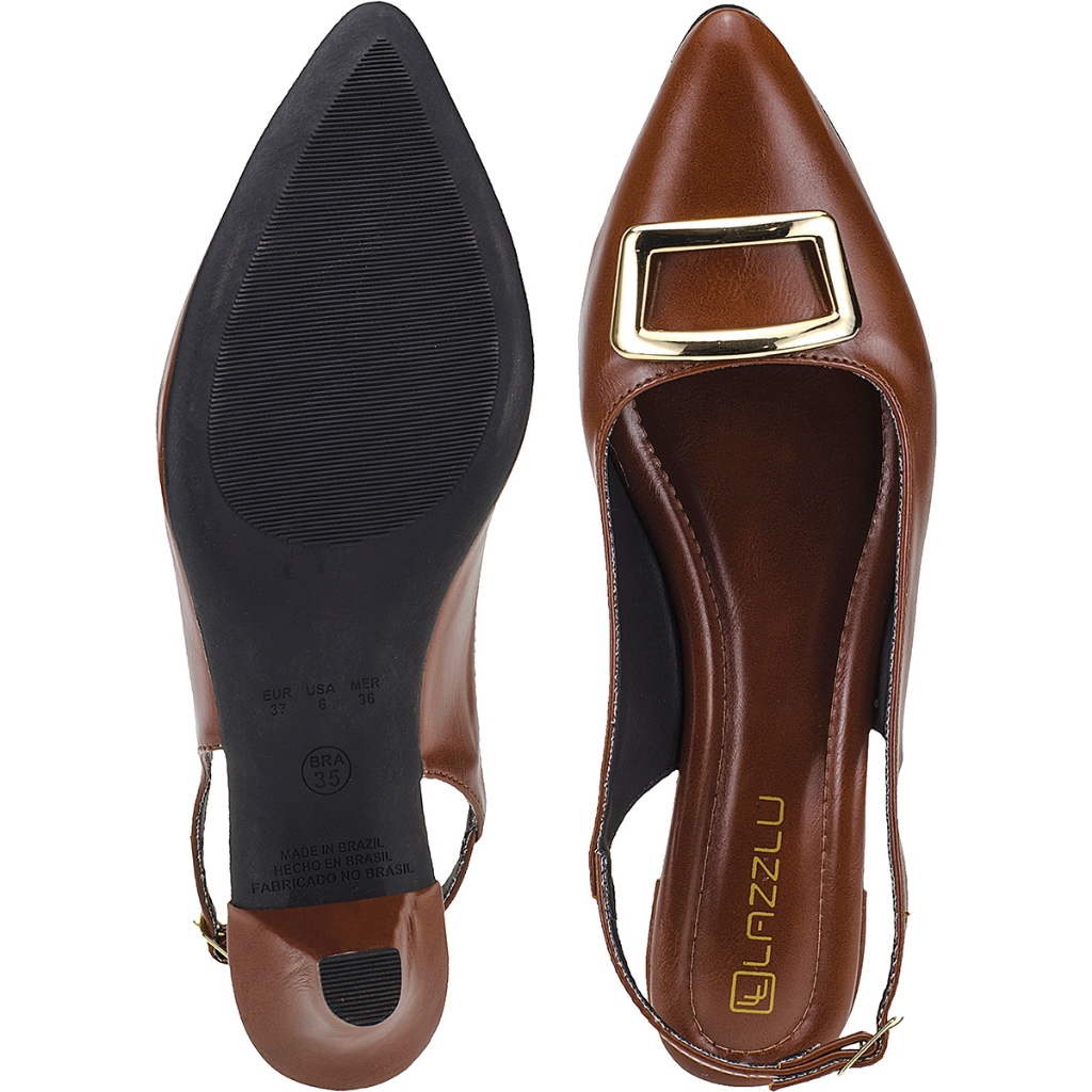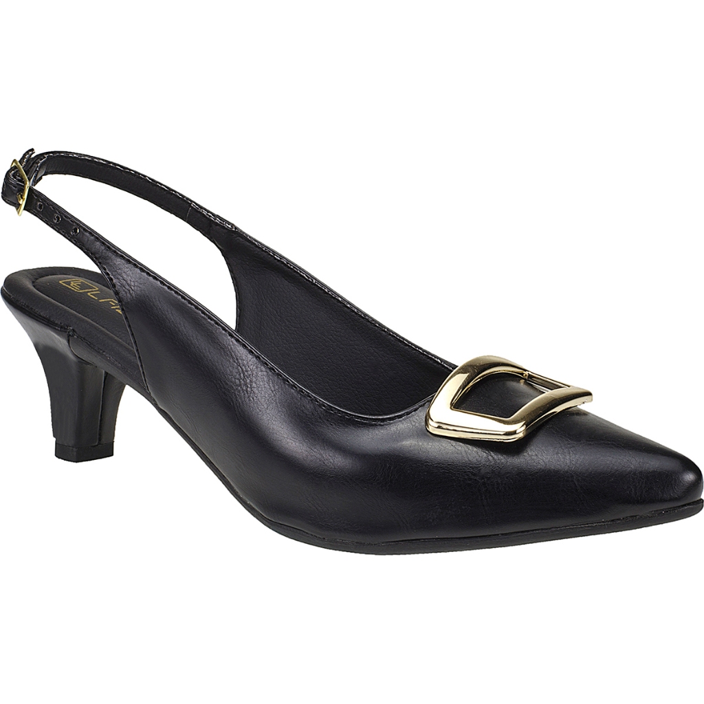 Sapato Scarpin Slingback Feminino Detalhe Metalizado Salto