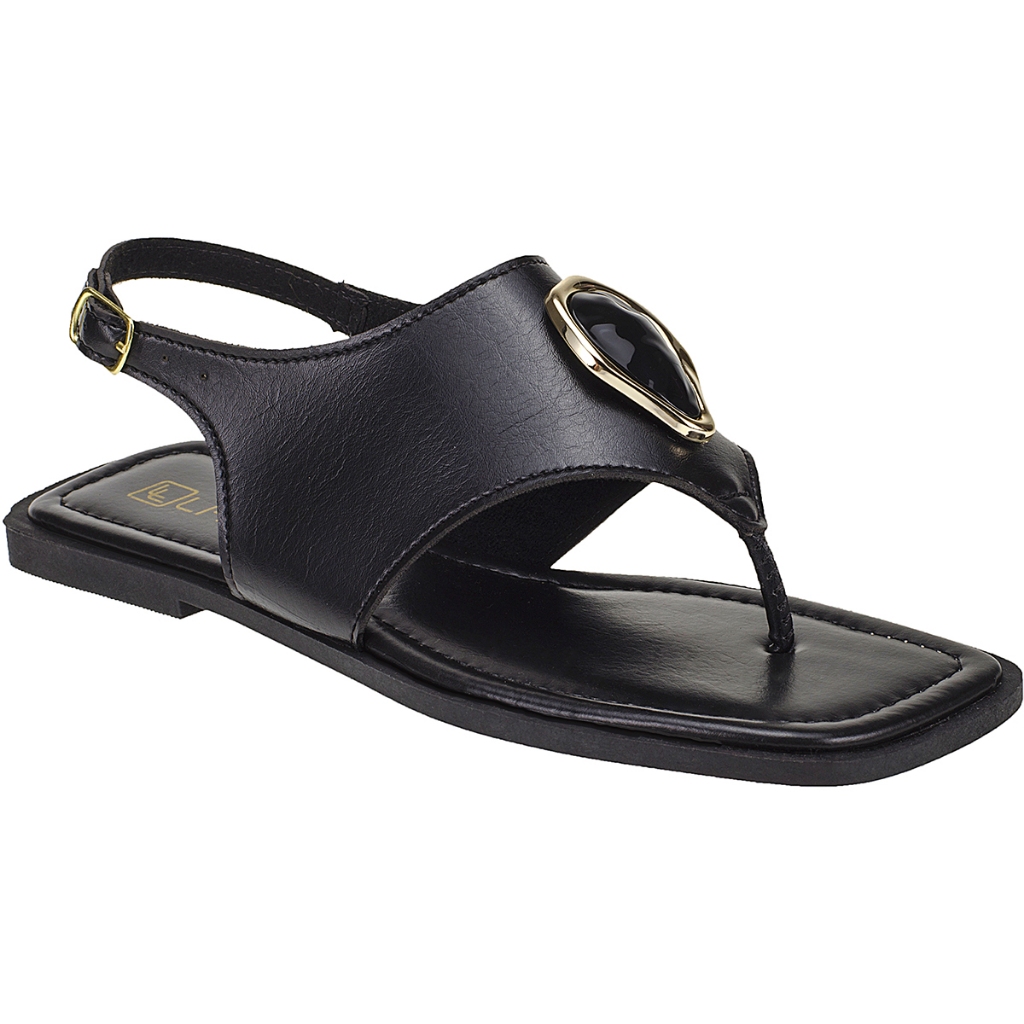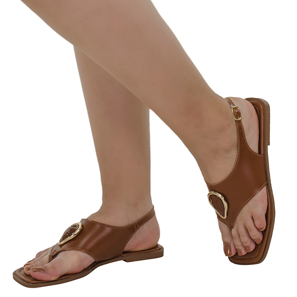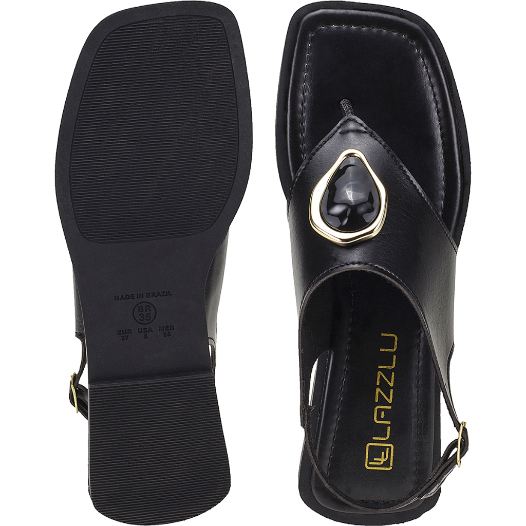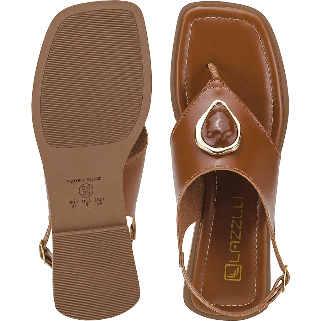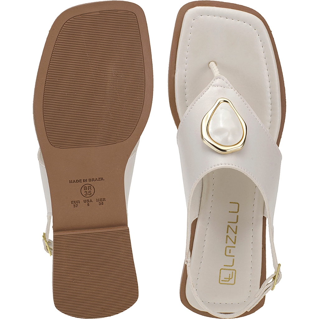 Rasteira Feminina Confortável Bico Quadrado Enfeite Dourado Rasteirinha