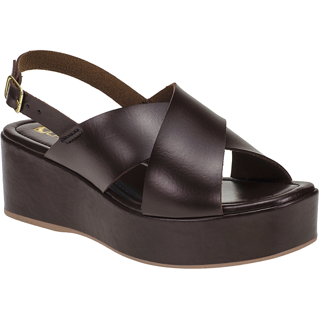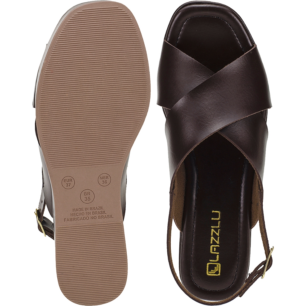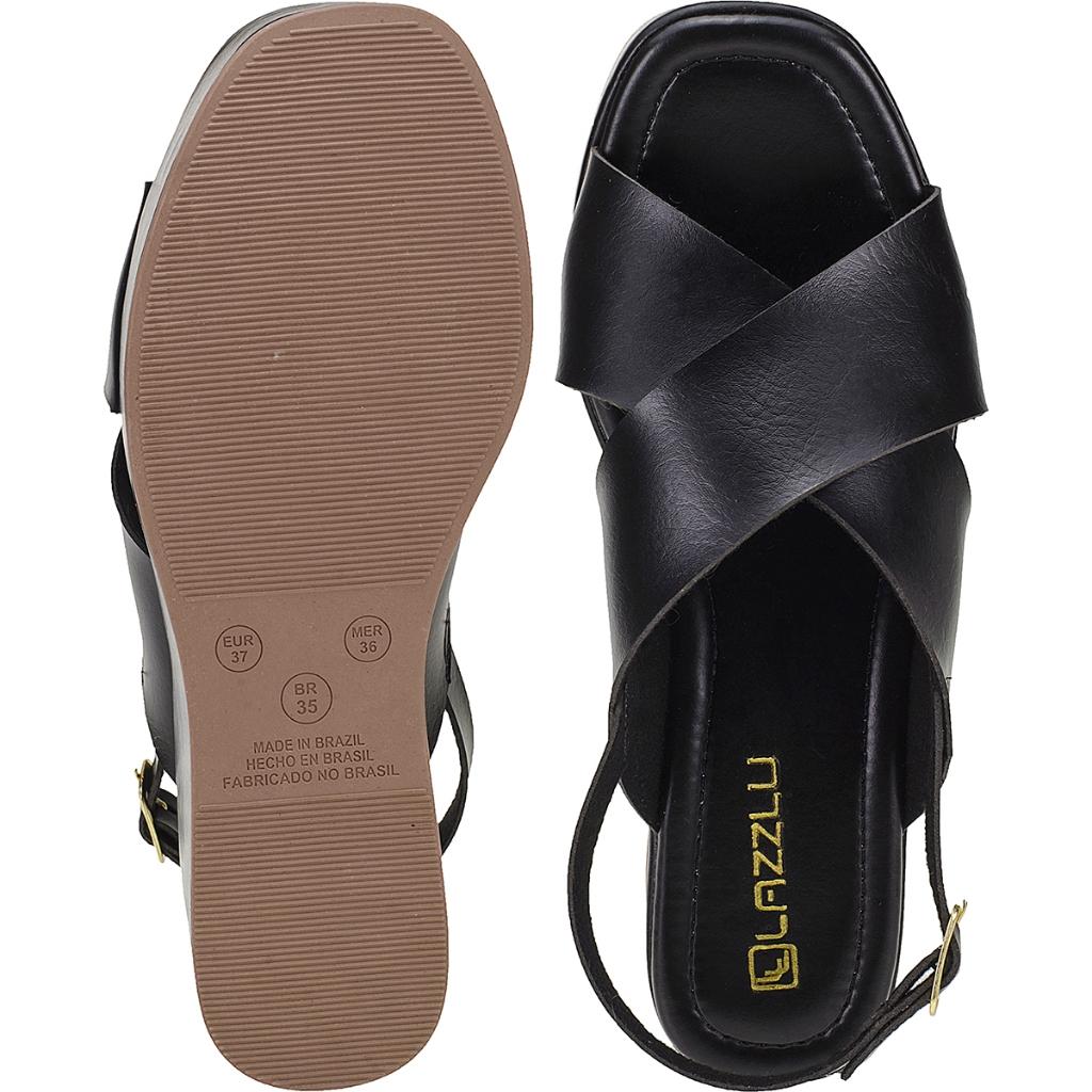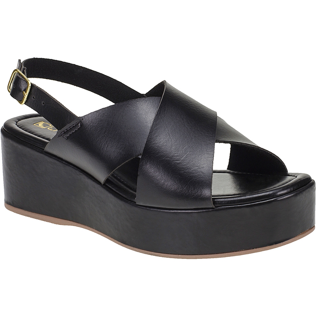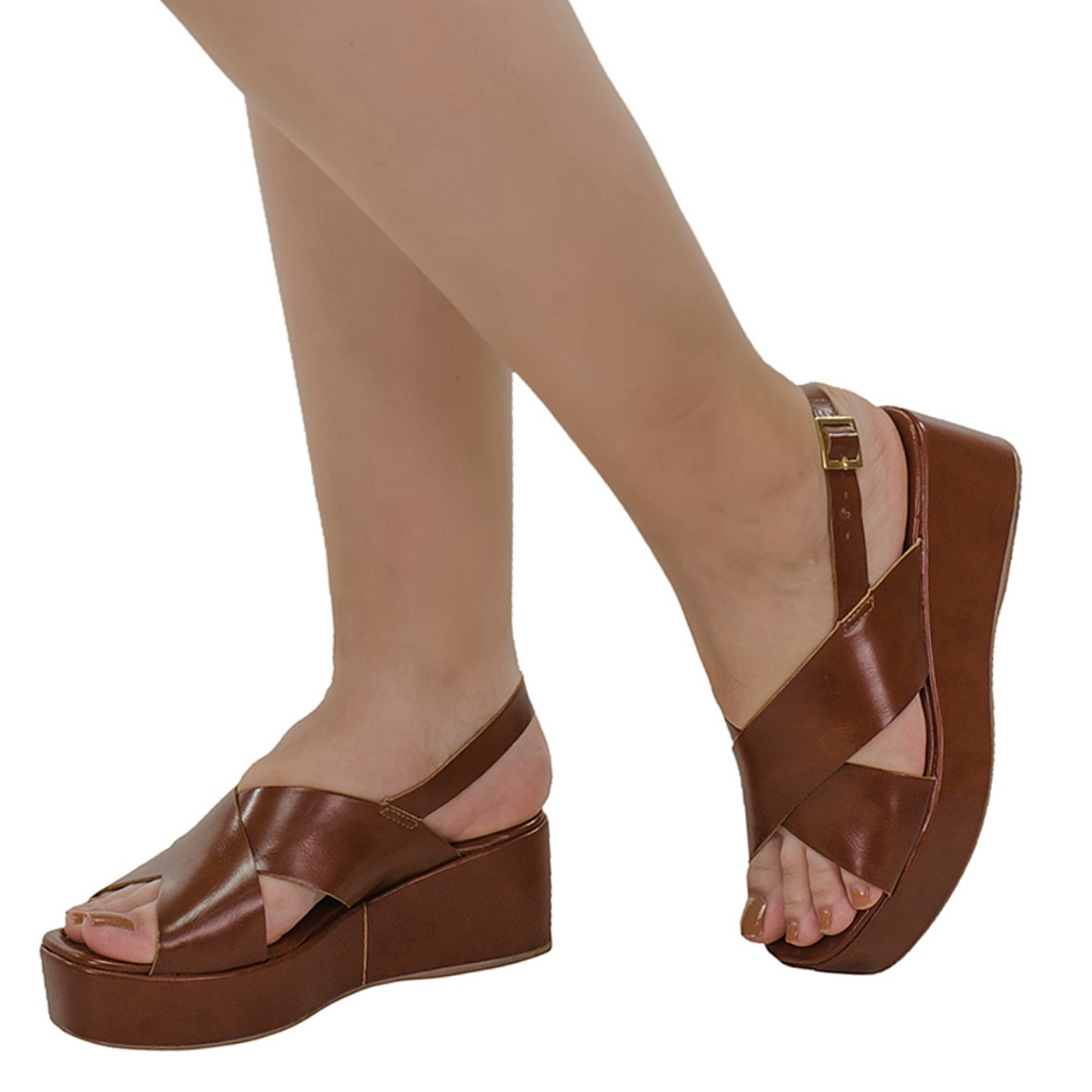 Sandália Anabela Feminina Plataforma Média Tiras Largas