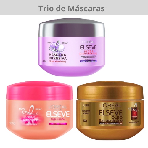 Trio Máscaras Elseve Loreal Paris C/3 Itens 300 Cada.