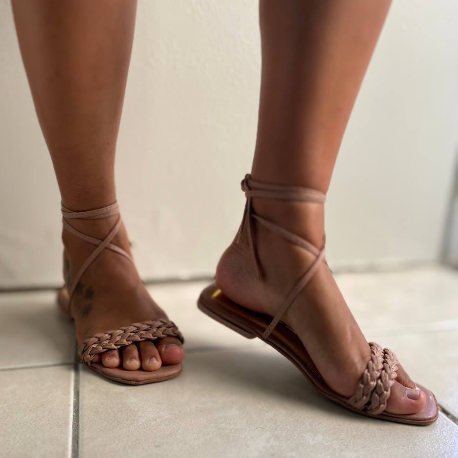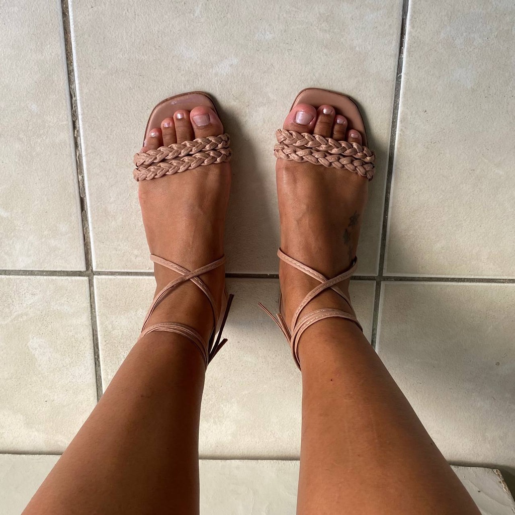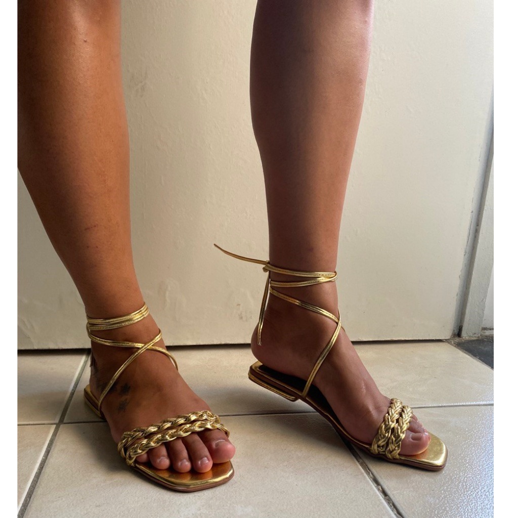Sandália Rasteira de Amarrar Rasteirinha Gladiador