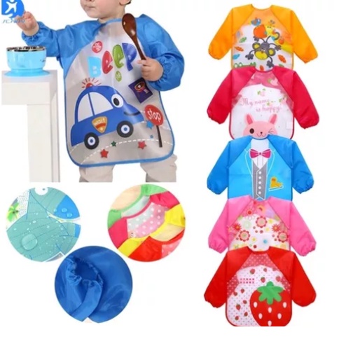 Babador de Poliéster Plástico Avental Manga Longa Impermeável Atividades Infantil Alimentação BLW Bebe Criança Meninas e Meninos
