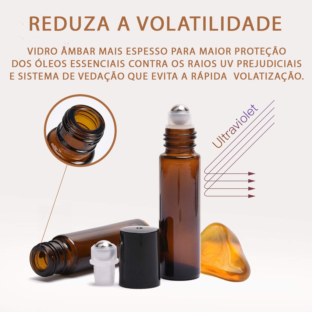 6 uni Frasco De Vidro Roll On Ambar 10ml + Acessórios Removedor de tampa, Funil e pipeta pasteur