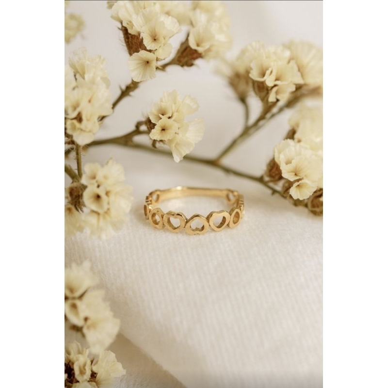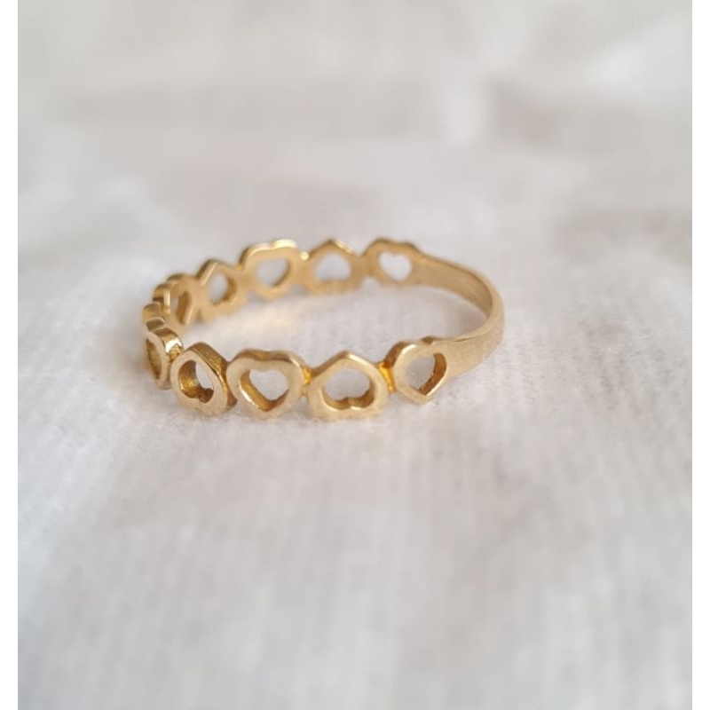 Anel mini corações de moeda antiga corações intercalados corações conectados delicado 0125