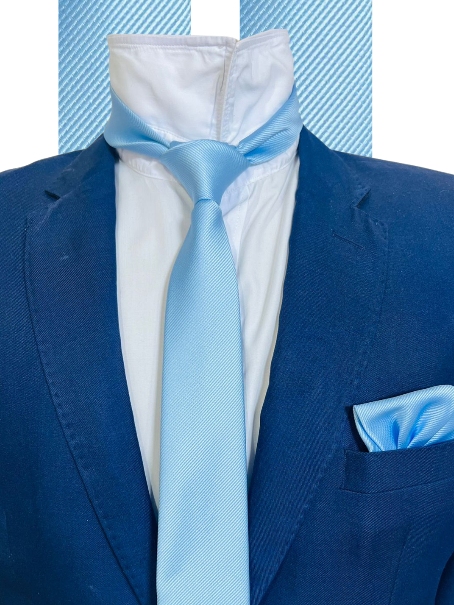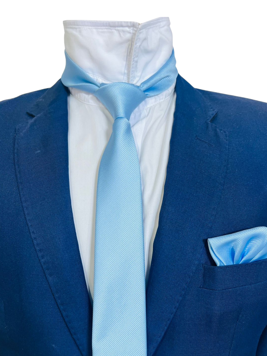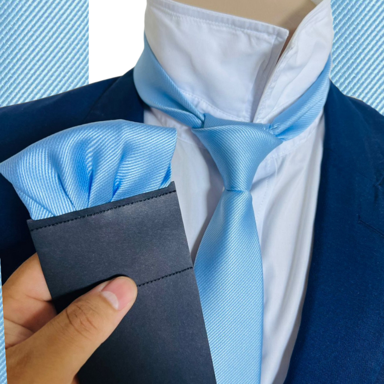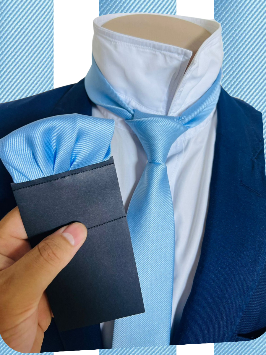 kit Gravata com Lenço Slim Azul Serenity Casamento