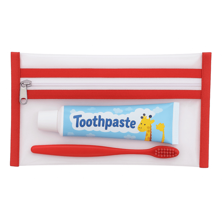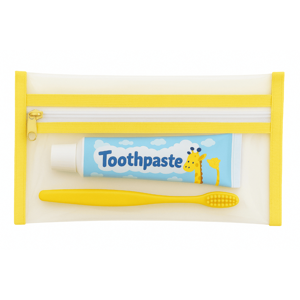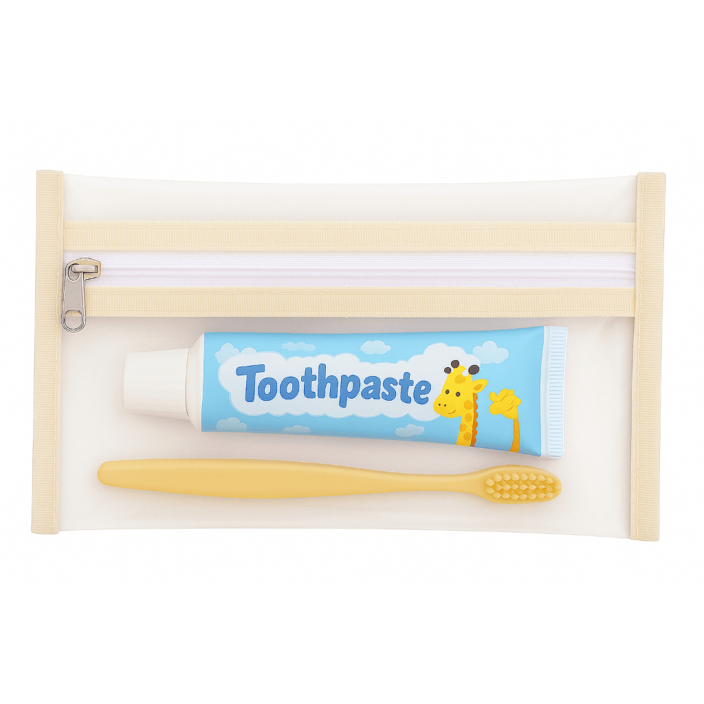 Kit Organizador de Higiene Bucal Infantil Saquinho Plástico Transparente Prático e Fofo Várias Cores