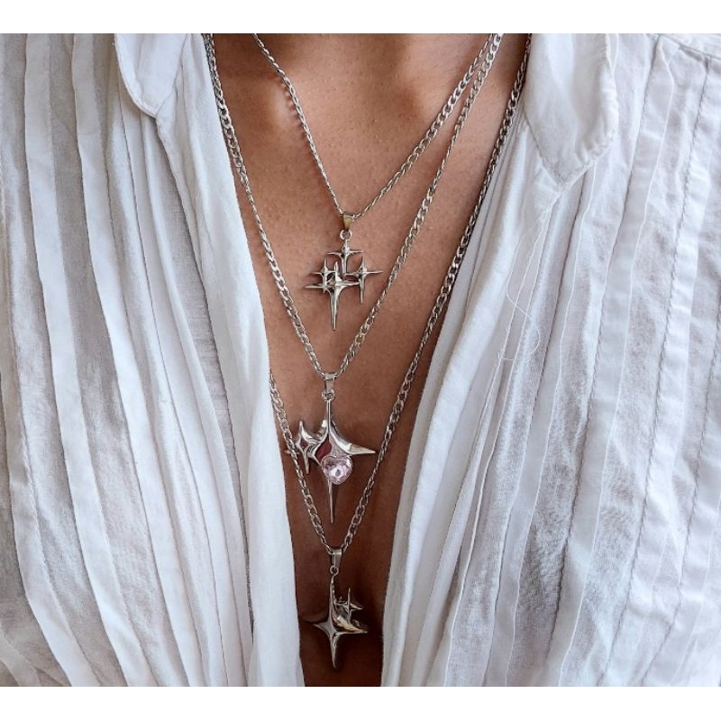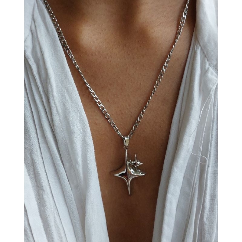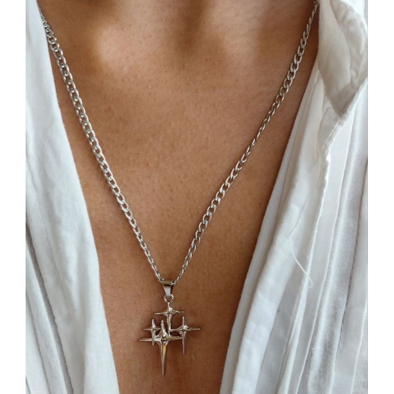 Colar aço inoxidável estrela de quatro pontas - egirl, aesthetic y2k, pingente anime, kpop, coquete