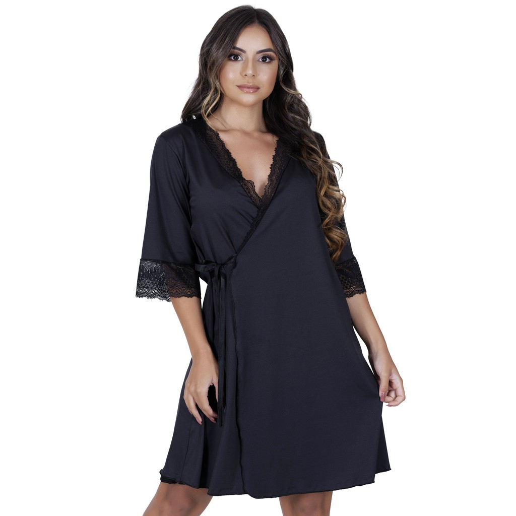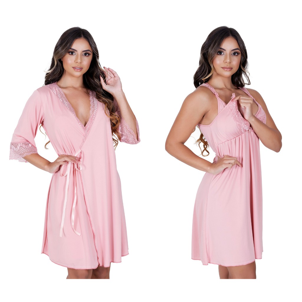 Kit Camisola de Amamentação Com Robe Gestante Maternidade Pós-Parto