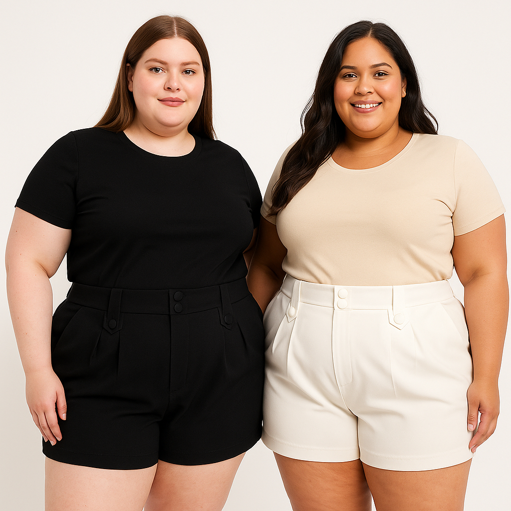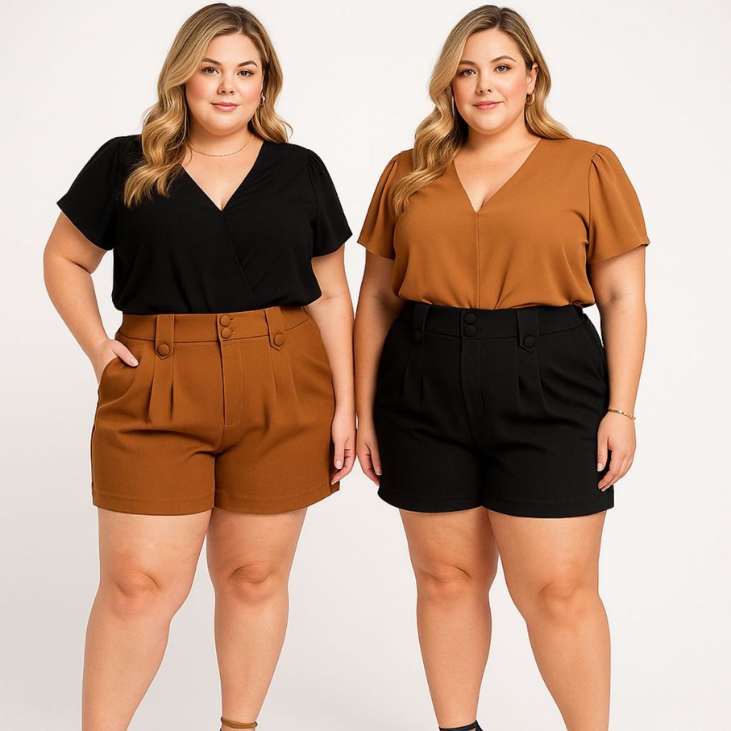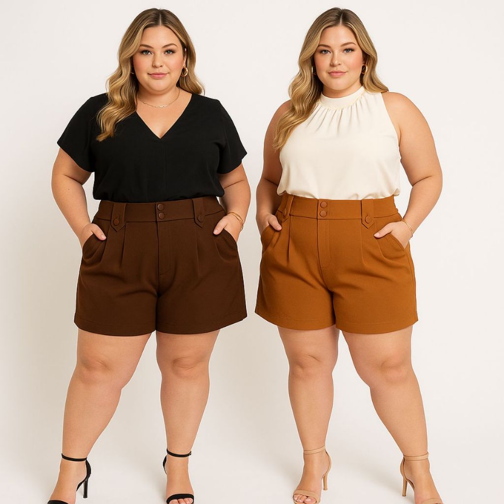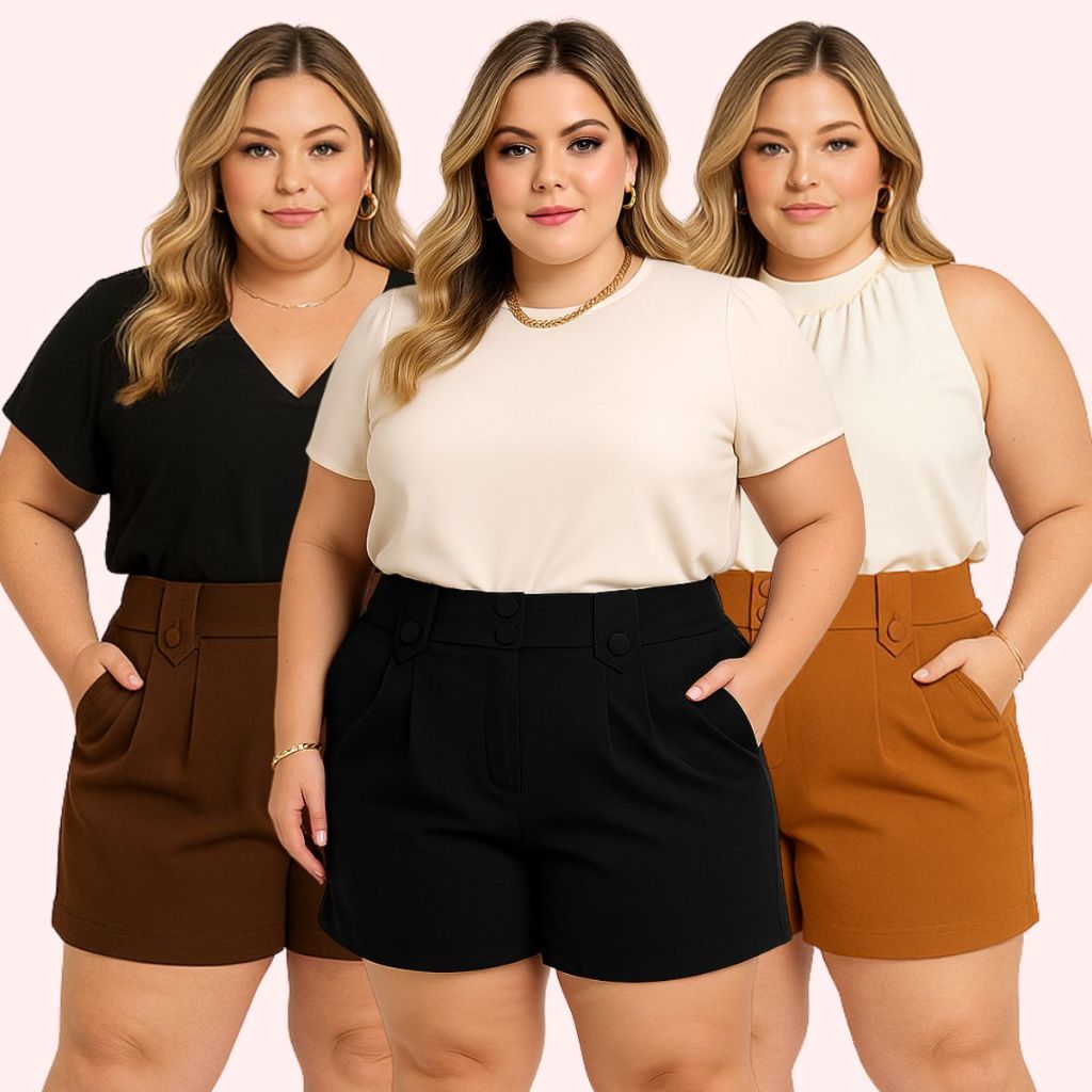 kit com 3 shorts de alfaiataria grande plus size modelo social elegante com elástico e zíper