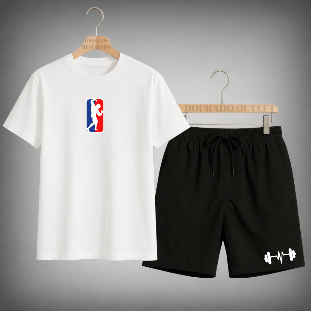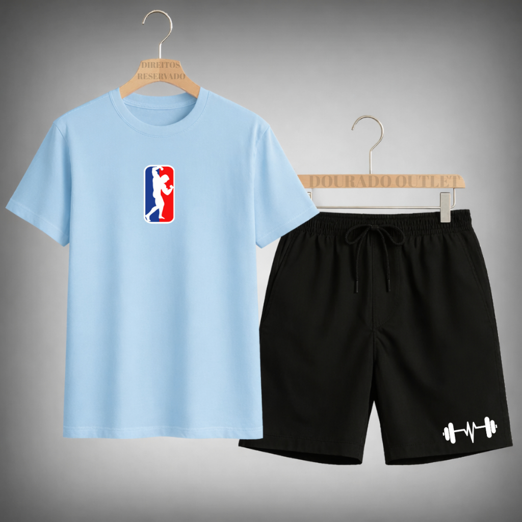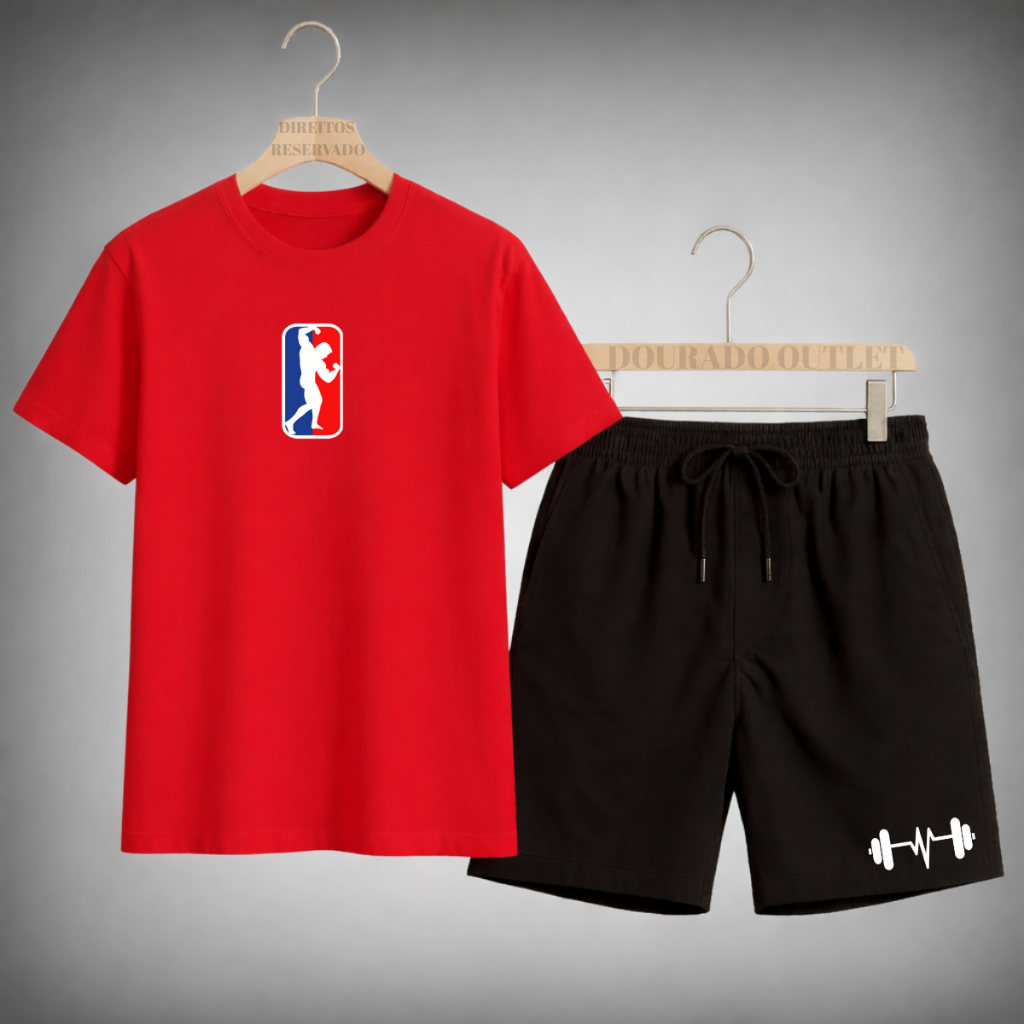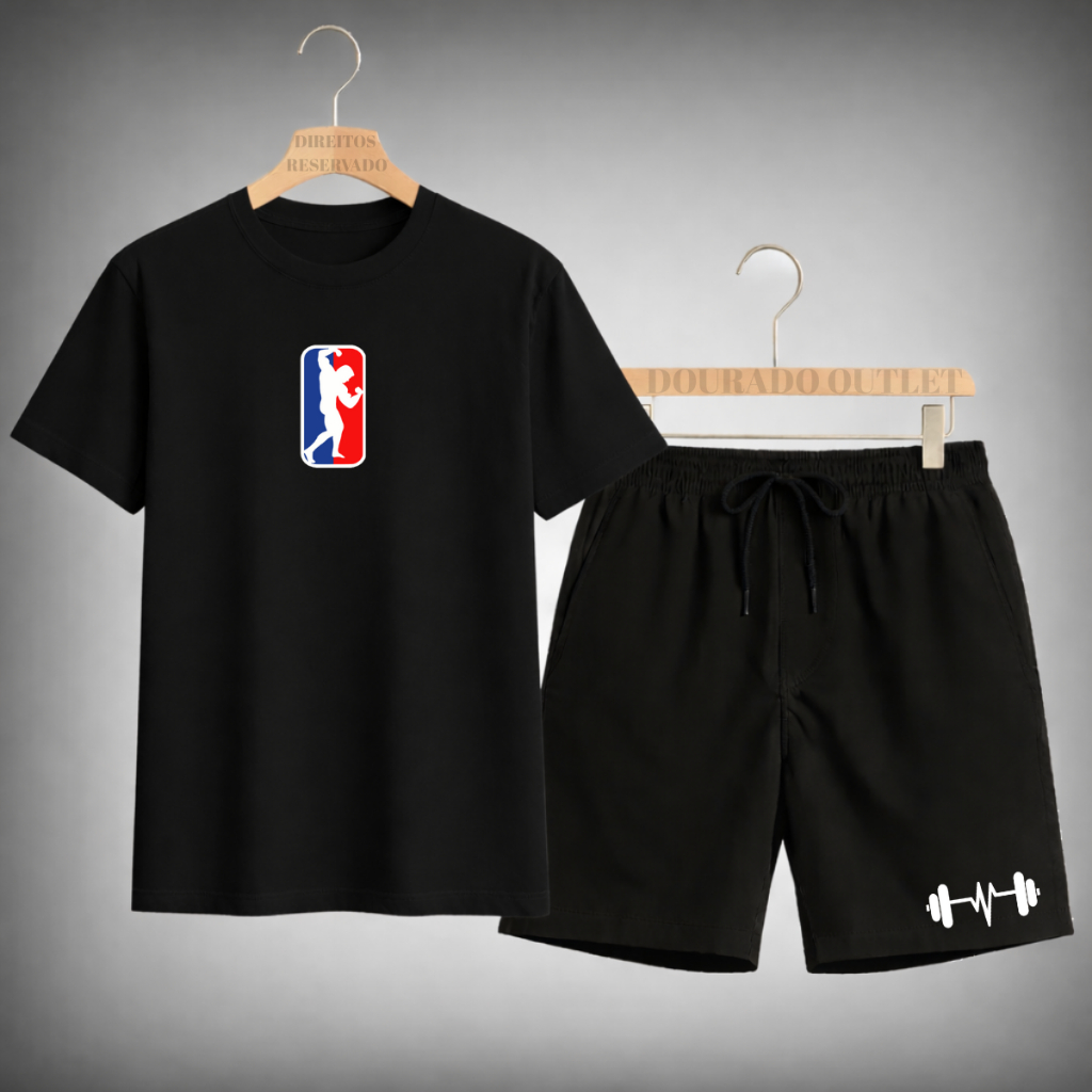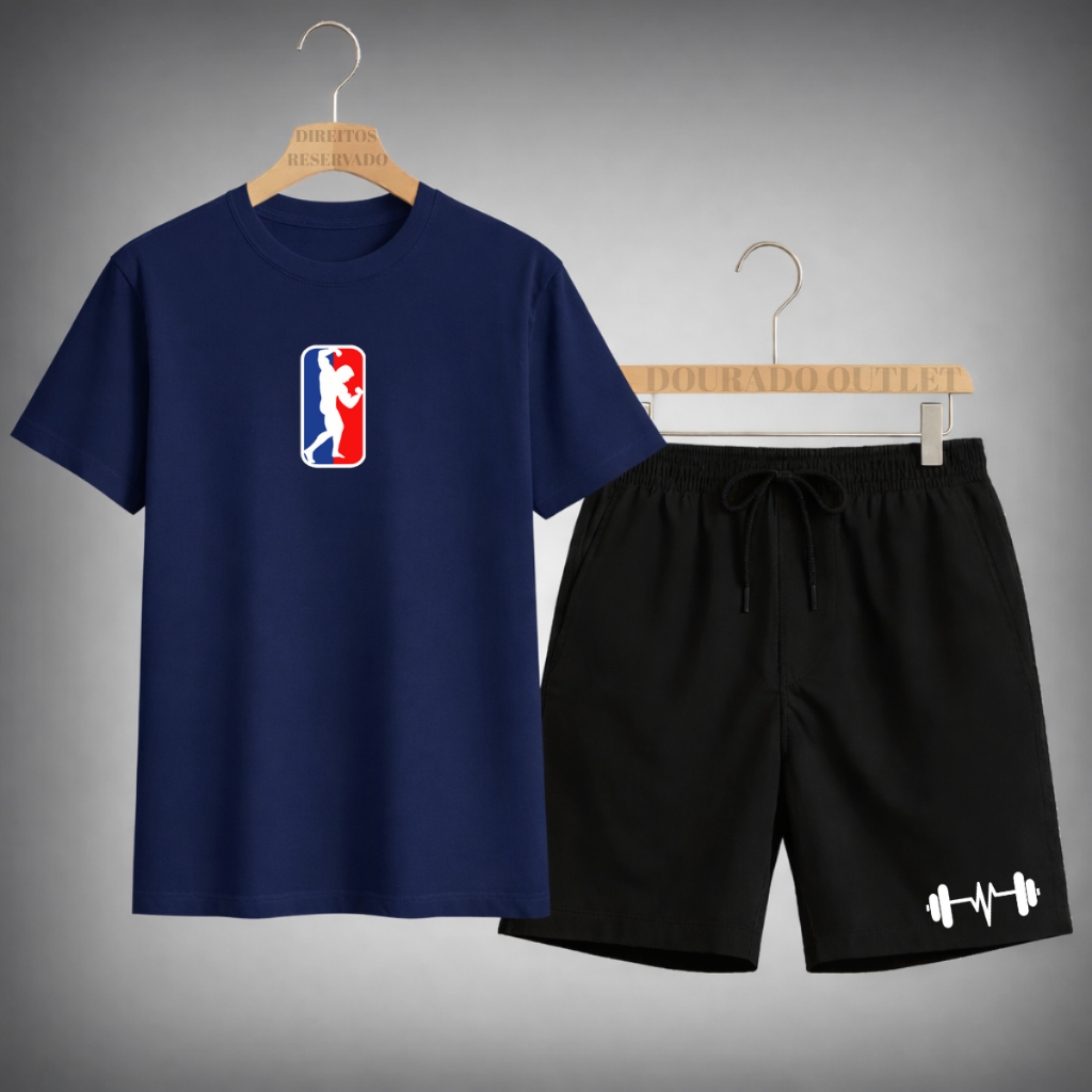 Kit Conjunto Camiseta Masculina Algodão Fitnes + Shorts Tactel Estilo Academia treino