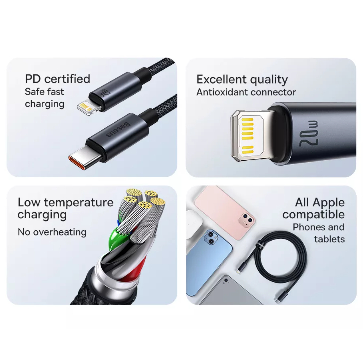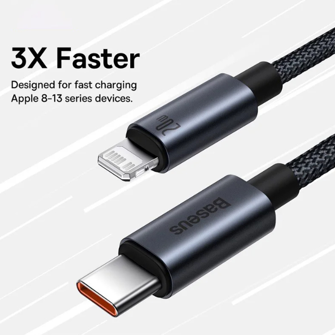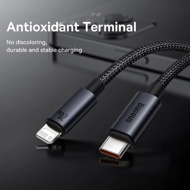 Cabo iPhone PD20W USB-C Lightning Baseus Turbo Reforçado