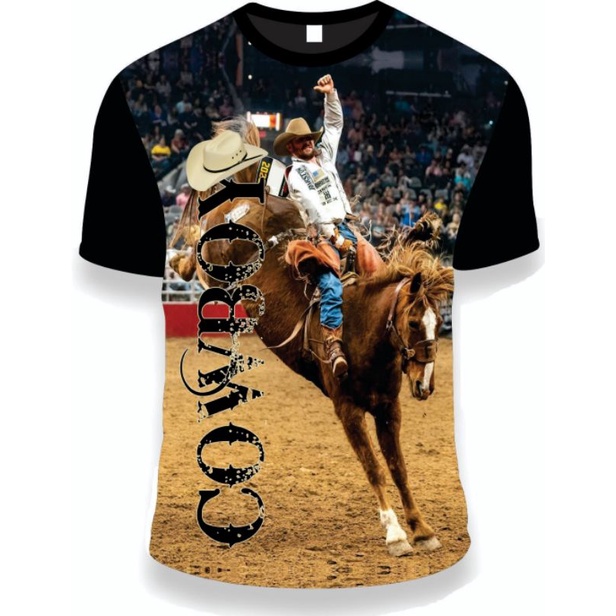 camiseta rodeio cowboy montaria em cavalo cor preta estampada